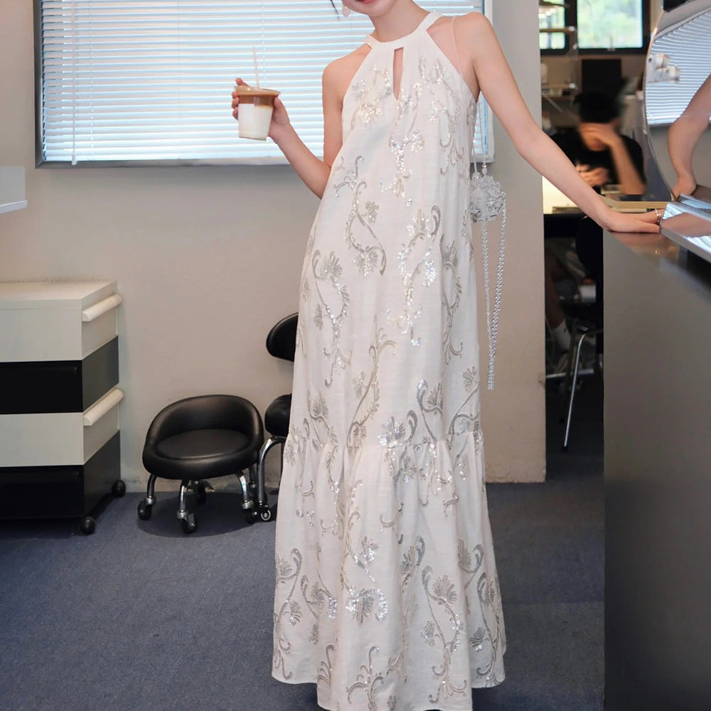 Summer New French Heavy-Brybeads Hooked Famous Hanging Neck Dress