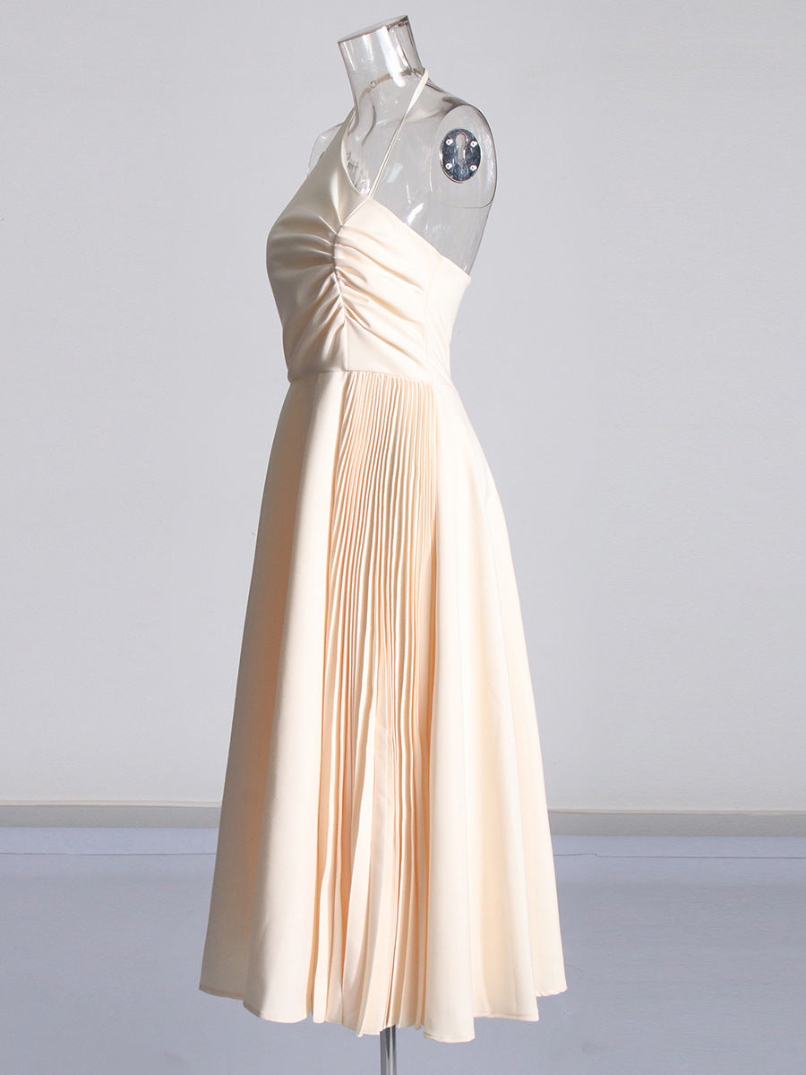 Temperament Dress Spring 2025 New Sling Folded White Dress Girl