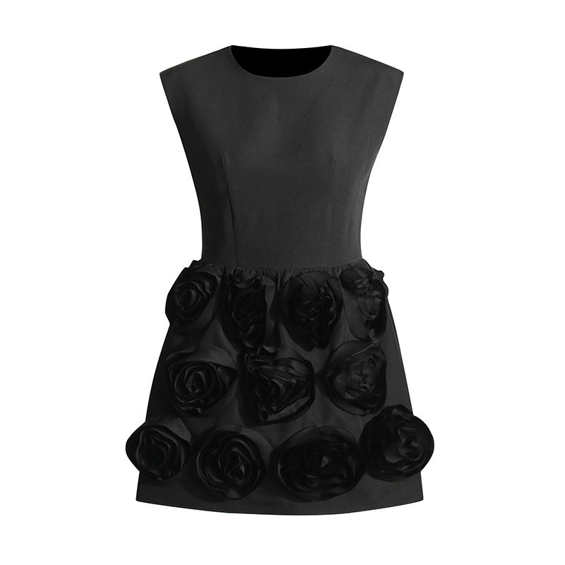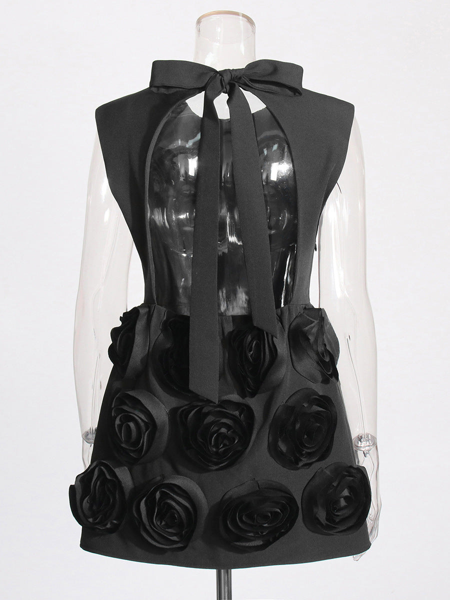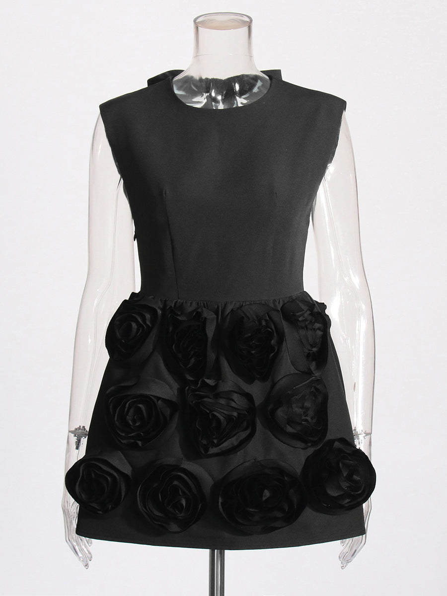 Temperament Elegant Style Dress 2025 Spring New Sleeveless Tie Spliced Three-Dimensional Flowers Short Dress Woman