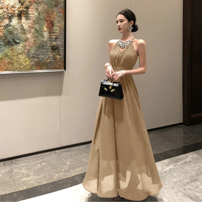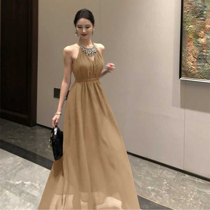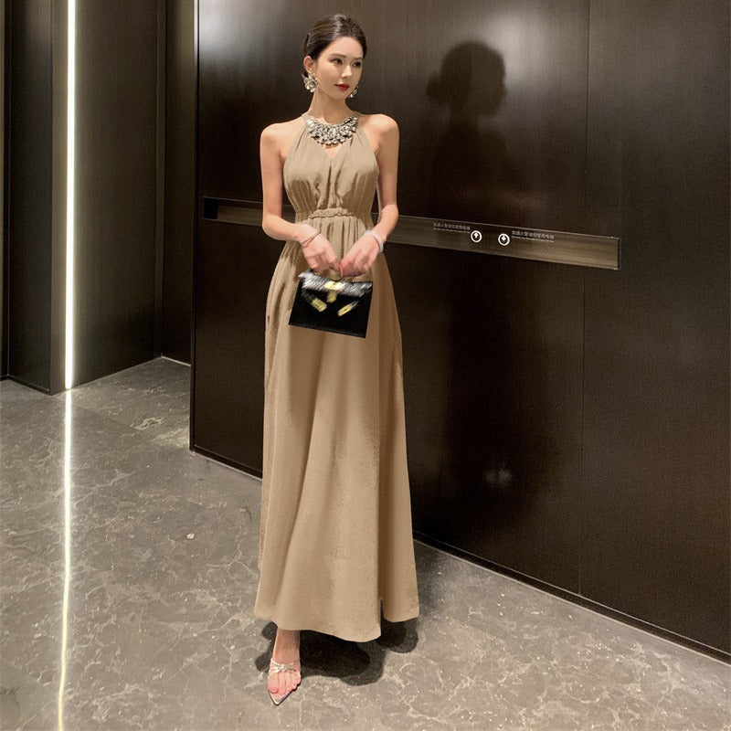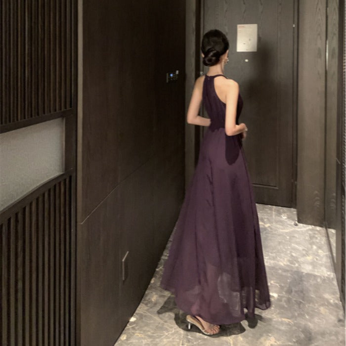 Temperament Famous Heavy Industry Birthday Annual Dress Dress Senior Purple Shoulderless Sleeveless Hanging Neck Dress Woman