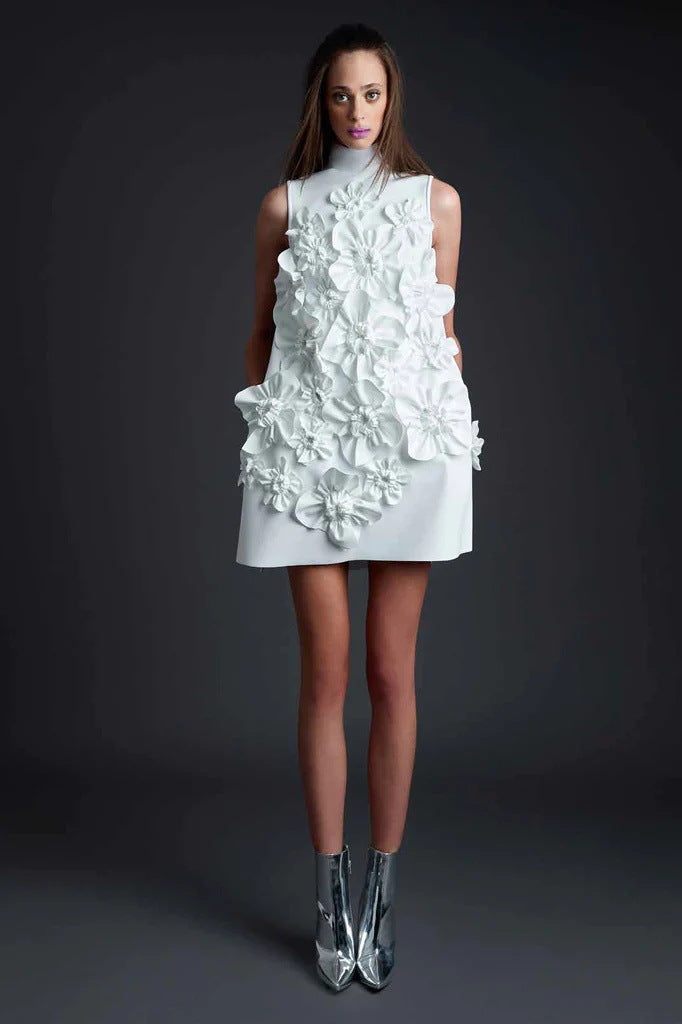 Temperament Famous Style Short Dress 2025 Spring New Heavy Industry Three-Dimensional Flowers Spliced With Dress Dress Woman