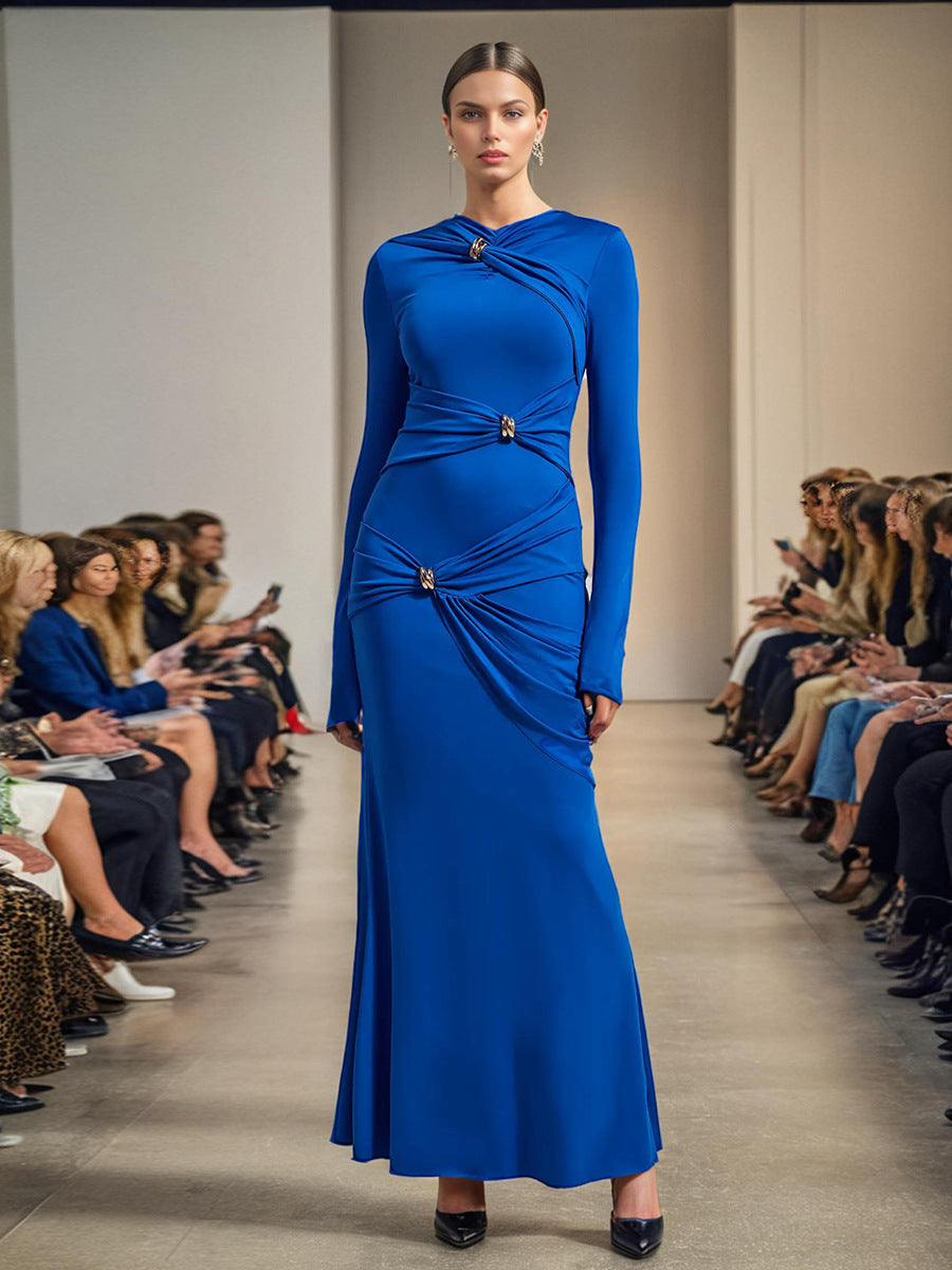 Temperament Gentle And Intellectual Wind 2025 Spring New Long Sleeve Asymmetric Fold Knitting Elastic Dress Dress Woman
