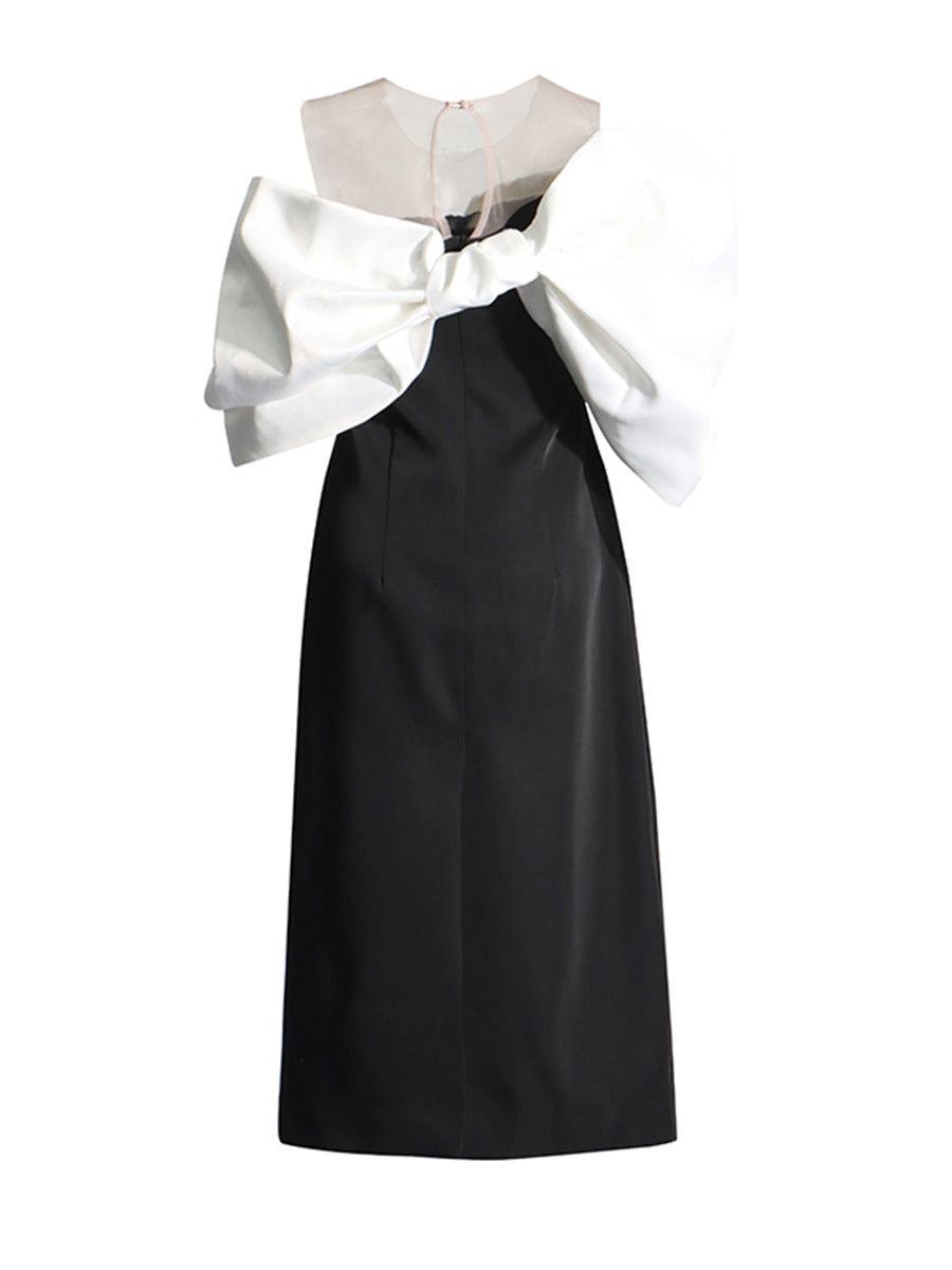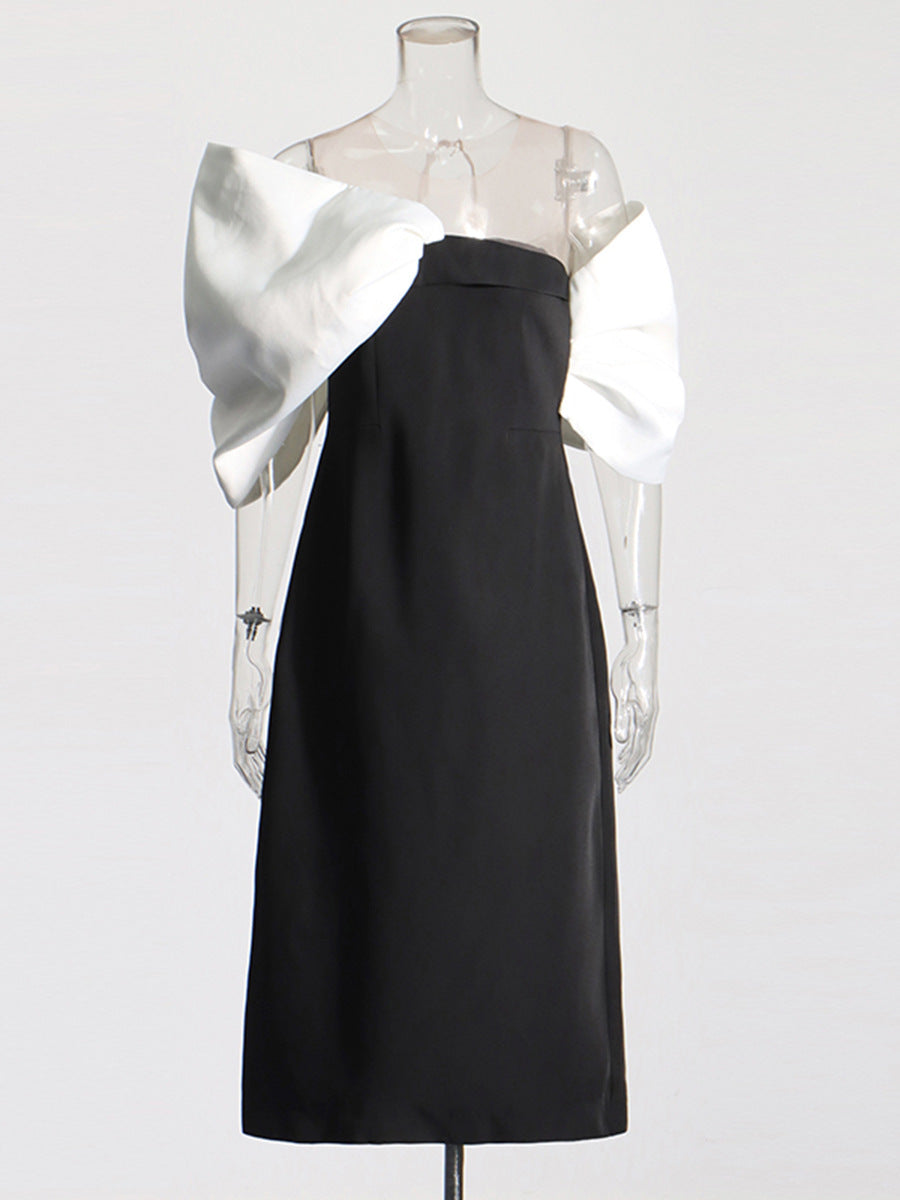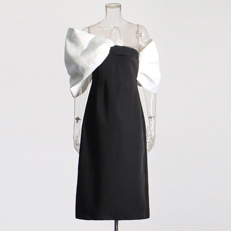 Temperament Sexy Wind 2025 Summer New Shoulder-Free Belt Irregular Shoulder Sleeves Butter Bow Butt Dress Woman