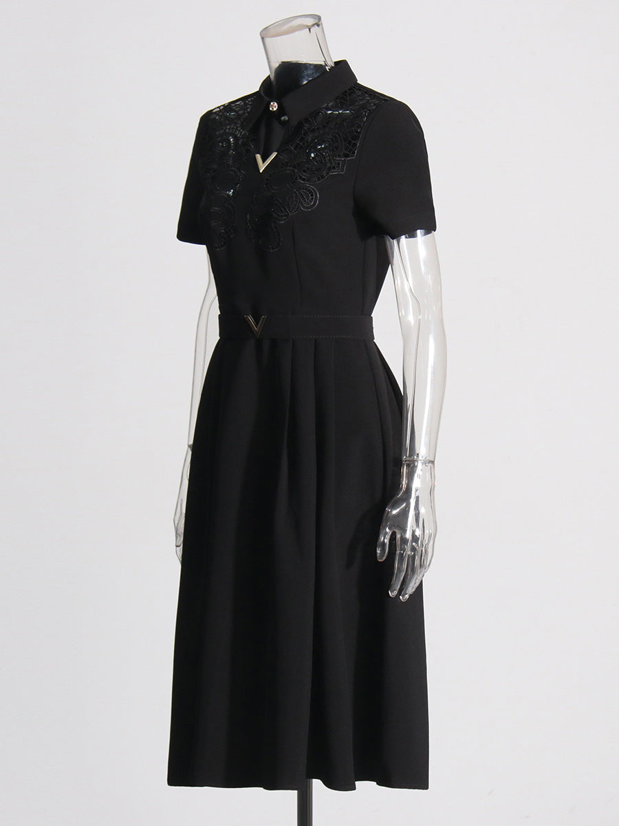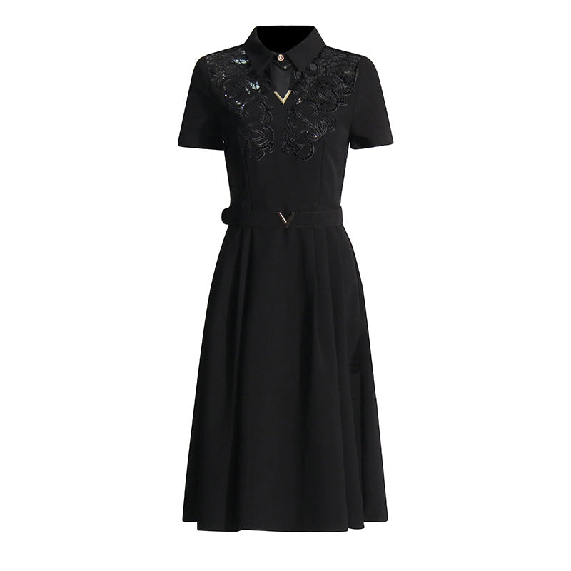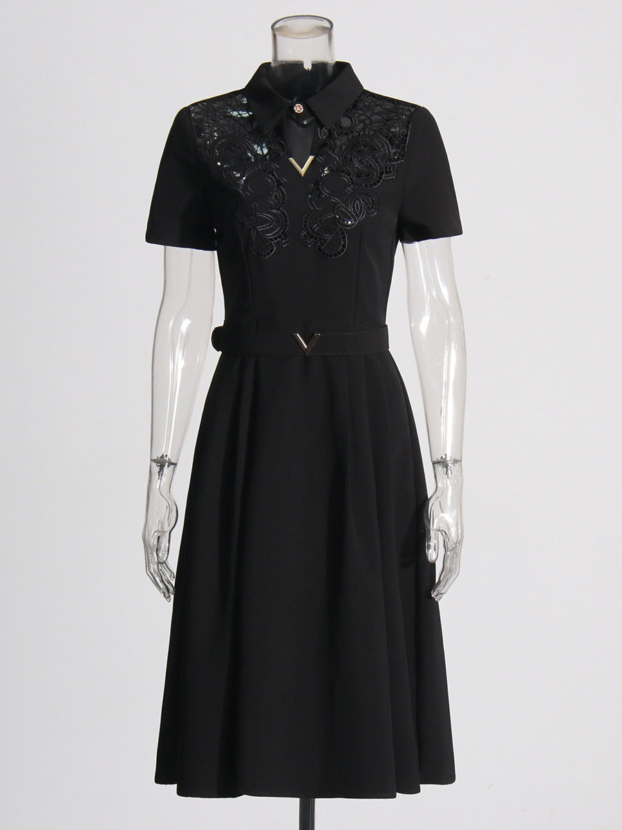 Temperament Style Dress 2025 Summer New Collar Hollow Crouses To Collect Belt Long Dress Women's Dress