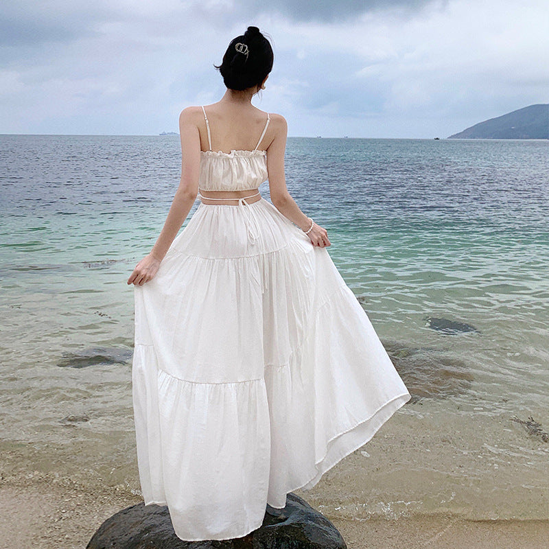 Travel Photography Dress Seaside Holiday White Dress Women 2024 Summer Dress Design Clending Waist Sling Skirt