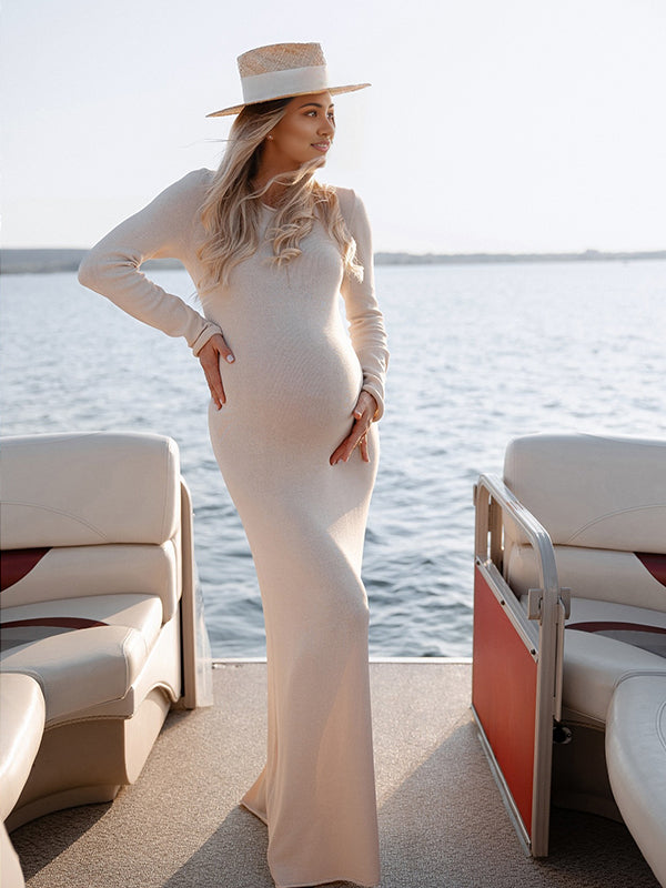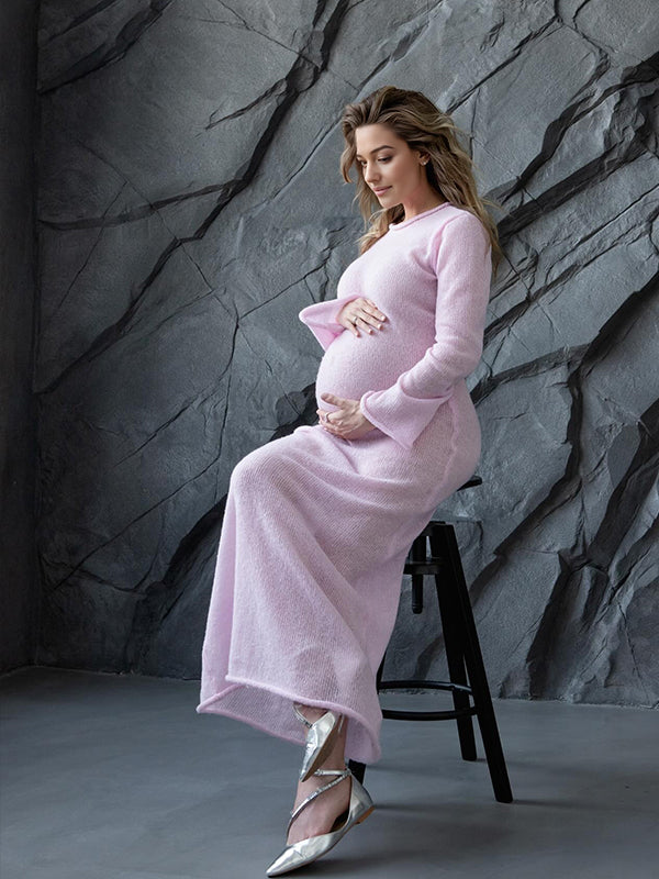 Two Piece Light Knit Tissue Bodycon Elegant Baby Moon Cover Up Maternity Photoshoot Maxi Dress Maternity