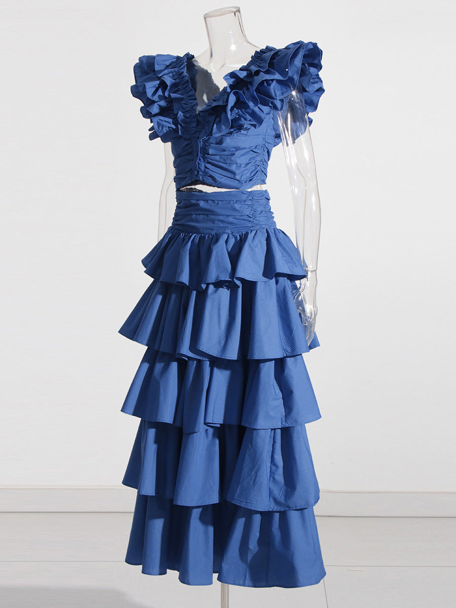 Vintage Elegant Set Spring 2025 New Laminated Laminated Stacked Stacked Laminated Leafed Dress Woman