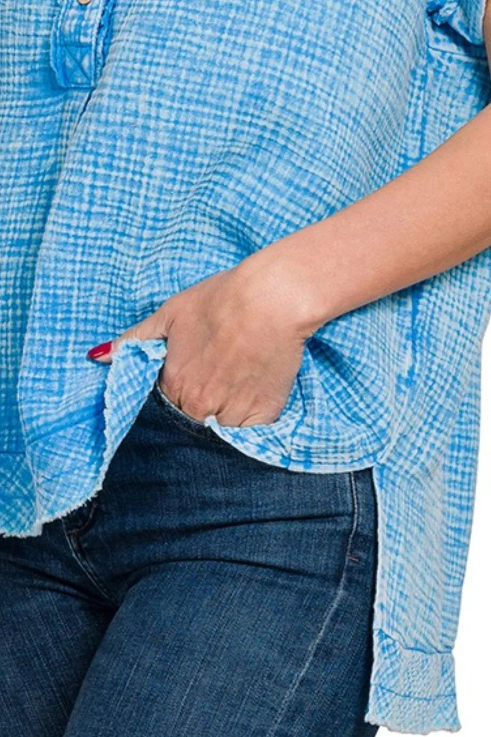Washed Double Gauze 3/4 Button Henley Neck Shirt DJPT