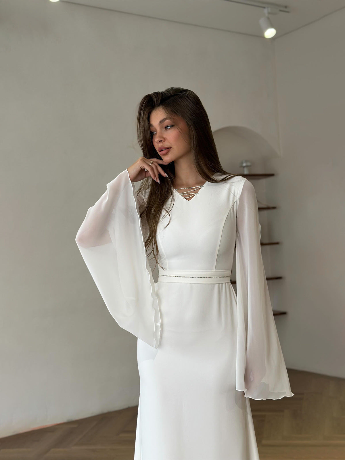 Women's Clothing 2024 Autumn New Fashion V-Neck Long-Sleeved Bag Hip Pencil Dress