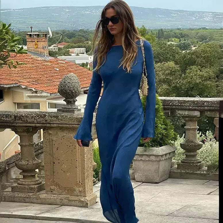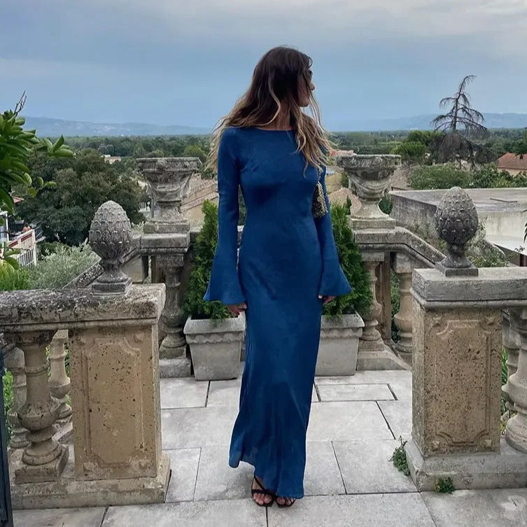 Women's Clothing Explosion 2025 New Solid Color Horn Sleeve Dress DJPT