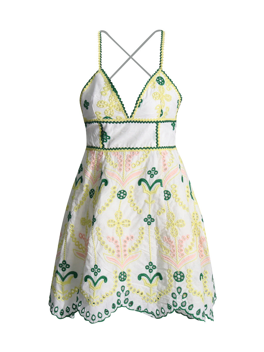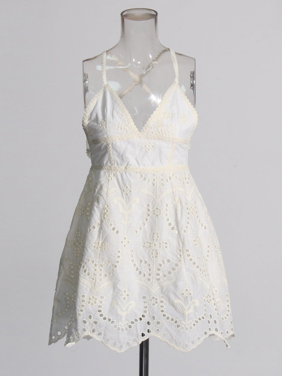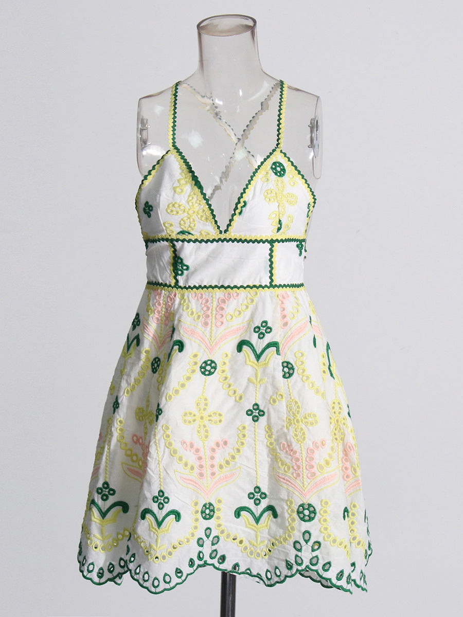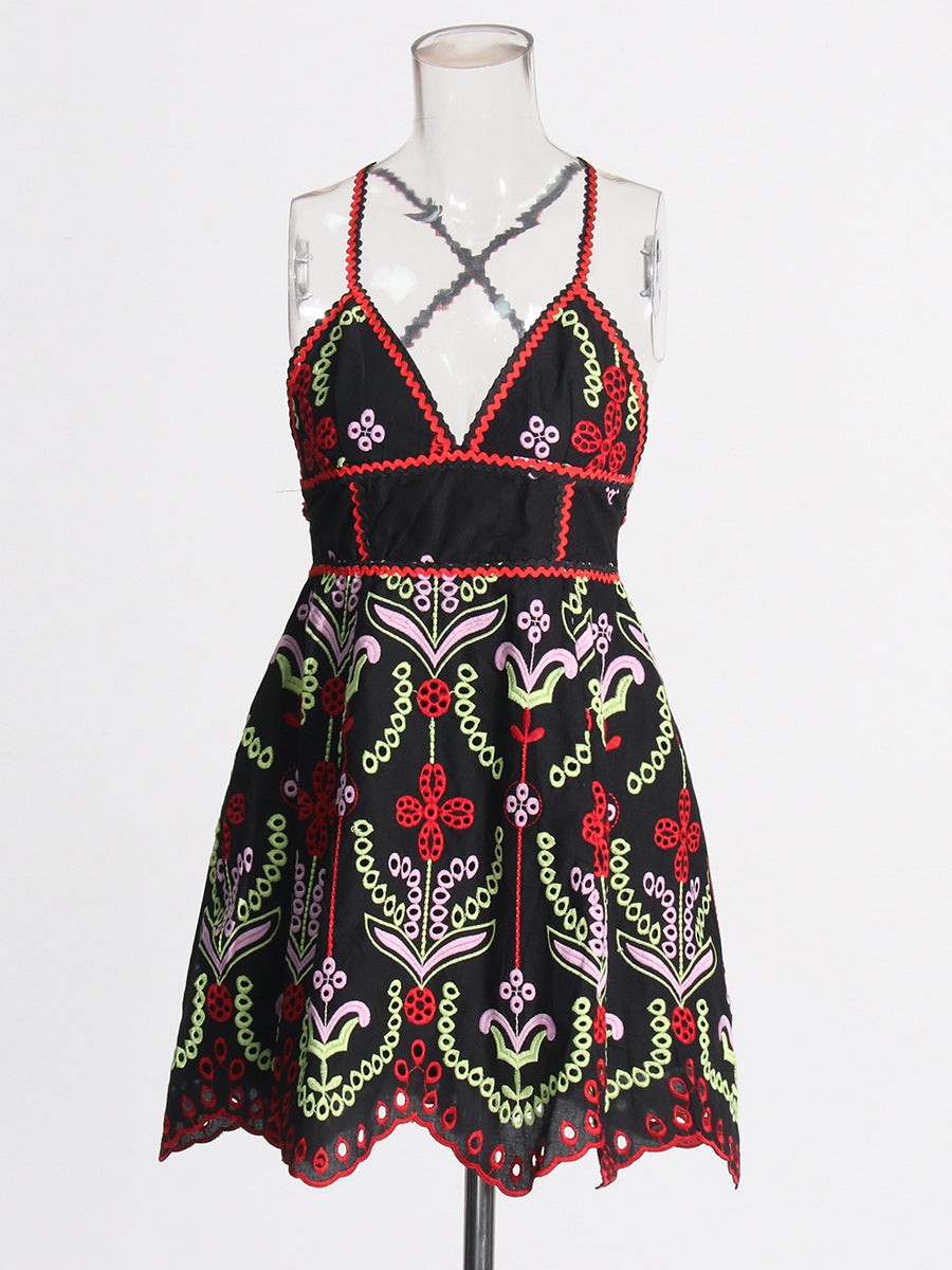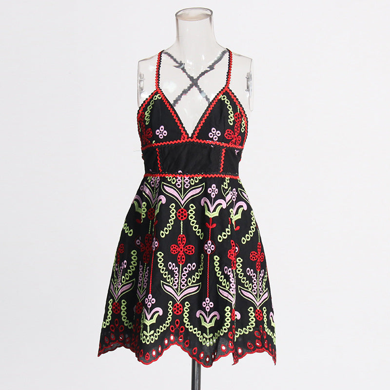 Women's Dress 2025 Still High-End Embroidery Print Sexy Slings Hollow Summer Bottoming Dress