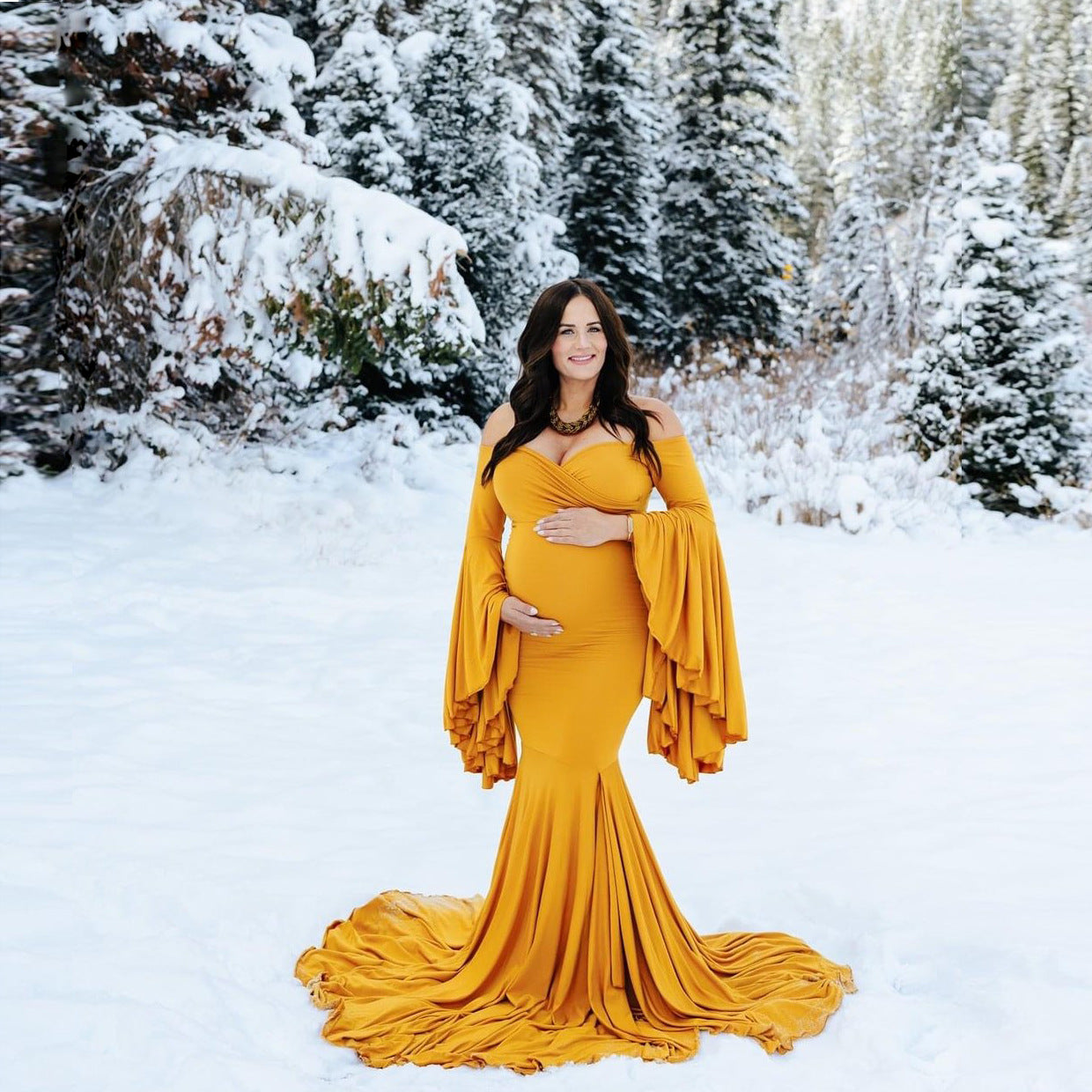 Women's Silk Cotton Pregnant Women's Lotus Leaf Sleeves To Drag Tail Dress Photography Dress 1176 Maternity