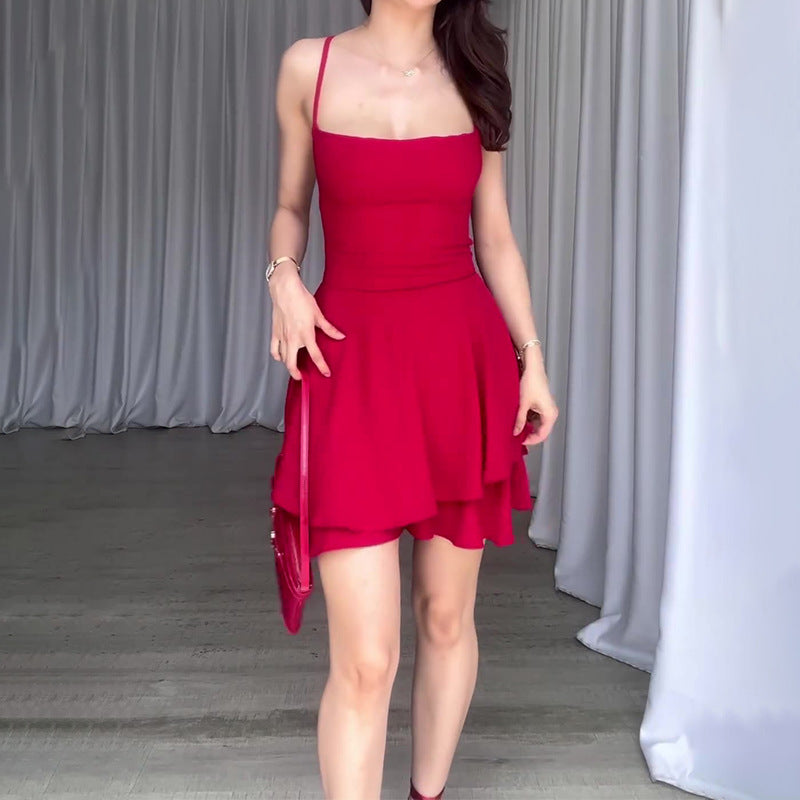 Women's Summer Sling Hanging Neck Collar Strap Sexy High-Rise Repair Cake Skirt