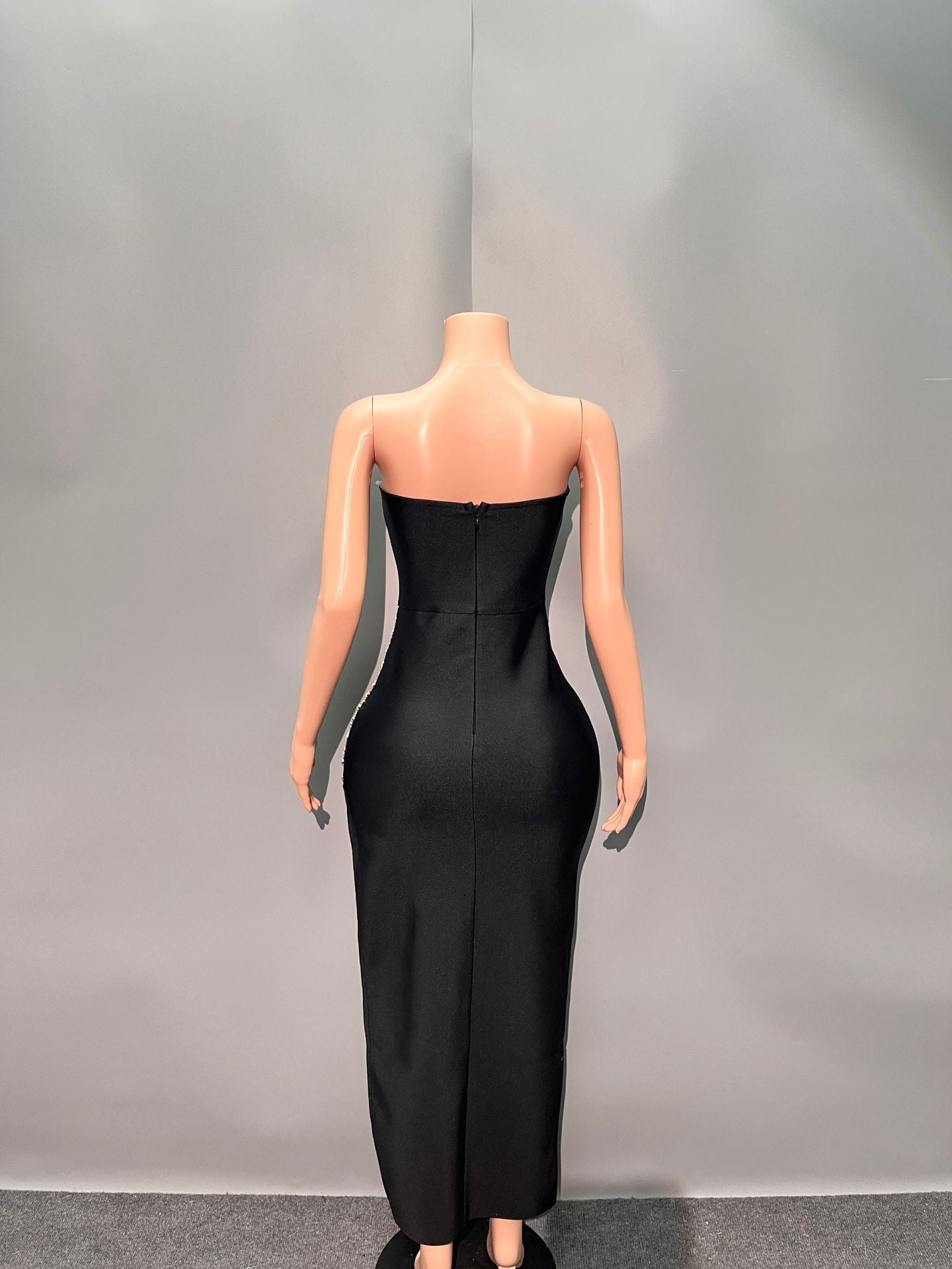 Heavy Industry Diamond High Open Fork Bra Black Dress Famous Party French High-End Feel Evening Dress
