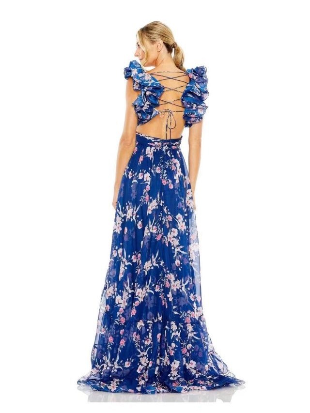 2024 Holiday Windwood Ear Sleeveless Back Cross-Lace Sexy Dew Chopped Flower Chiffon Skirt Long Dress