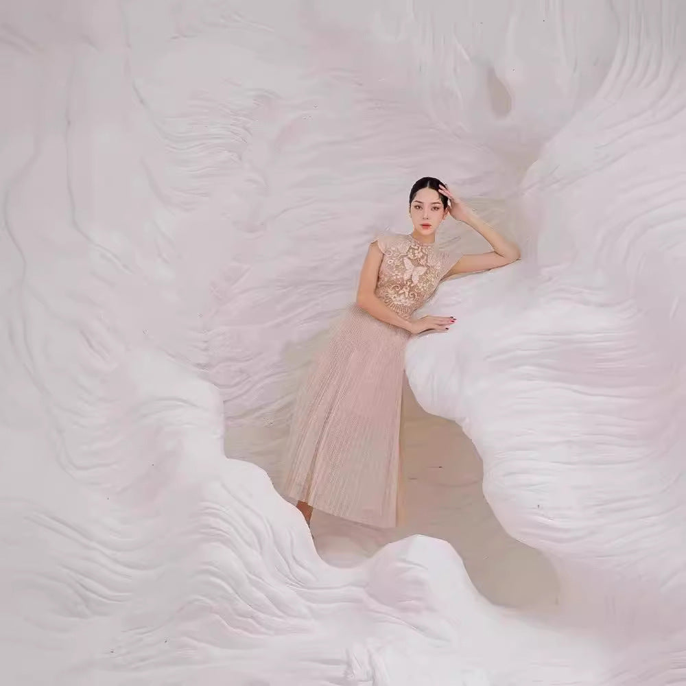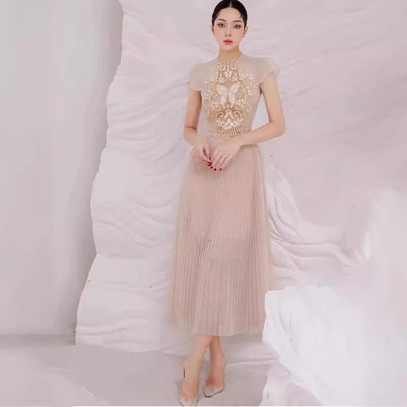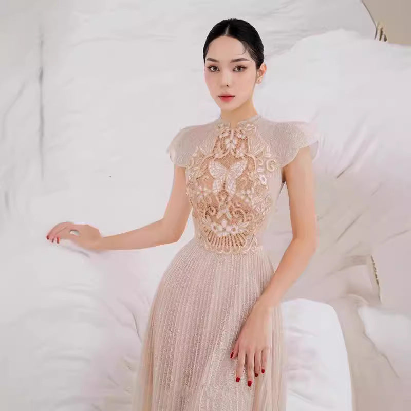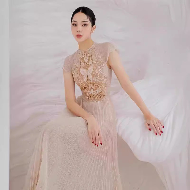2025 Champagne Butterfly Flower Hollow Embroidery Dress Dress Dress 9010