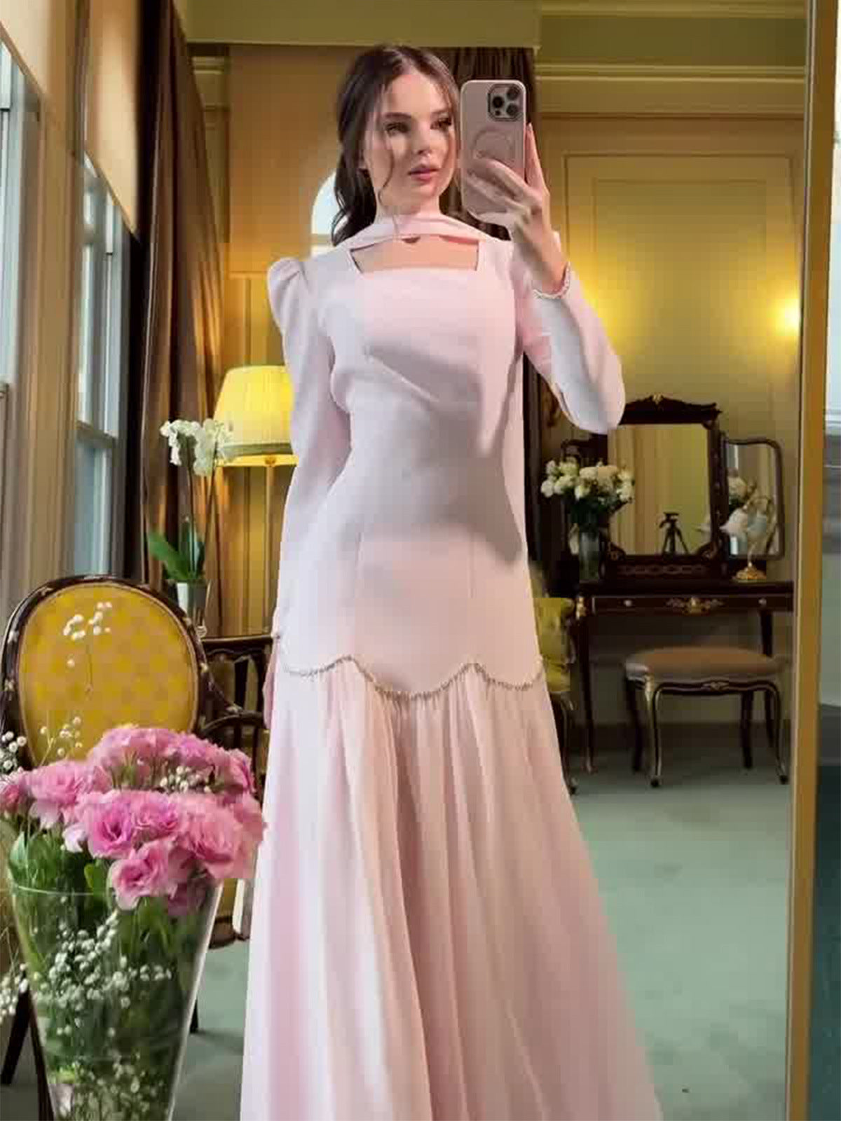 2025 New Hand-Drilled Weaving Woven Tape Design Long-Sleeved Lady Body Dress