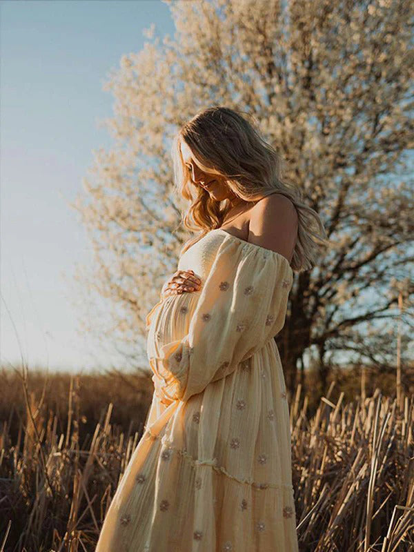 Apricot Daisy Off Shoulder Ruffle Hoho Maternity Photoshoot Maxi Dress Maternity