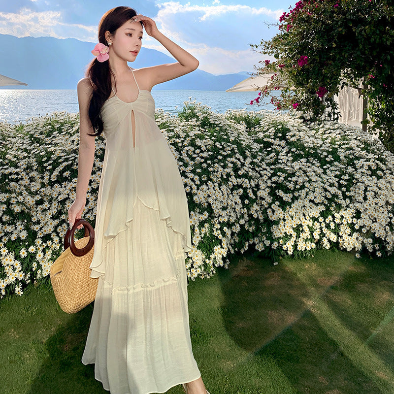 Atmosphere Feel Seaside Vacation Bra Hanging Neck Sling Suit Skirt Swing Flowing Long Skirt