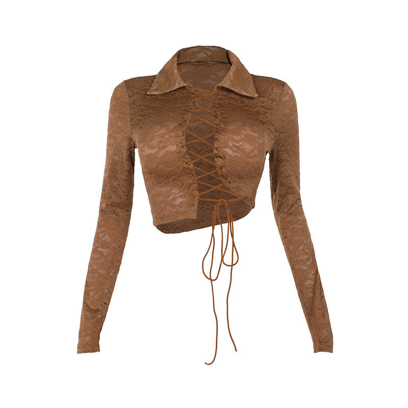 Autumn 2025 New Temperament Hottie Lace Long Sleeve Strap Sexy Top Girl DJPT