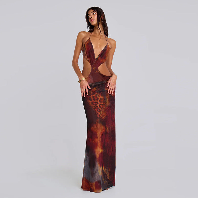 Autumn 2025 New Temperament Sexy Leopard Print Holiday Hollow Dress DJPT