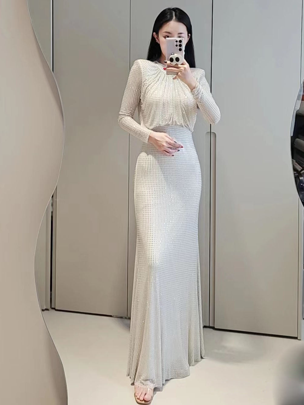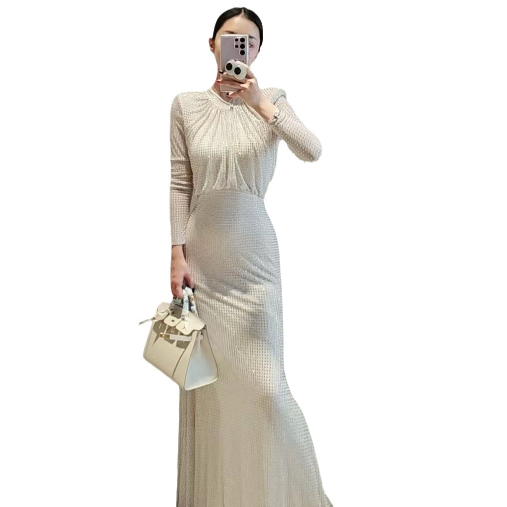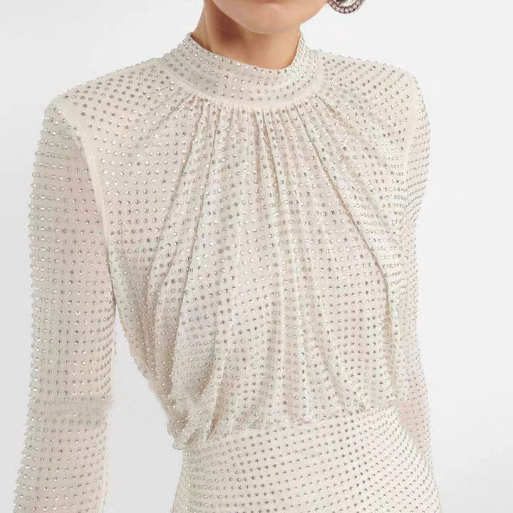 Autumn New Famous French Heavy Industry Hot Sleeve Long Sleeve White Top High Waist Thin Women's Half-Dress Suit