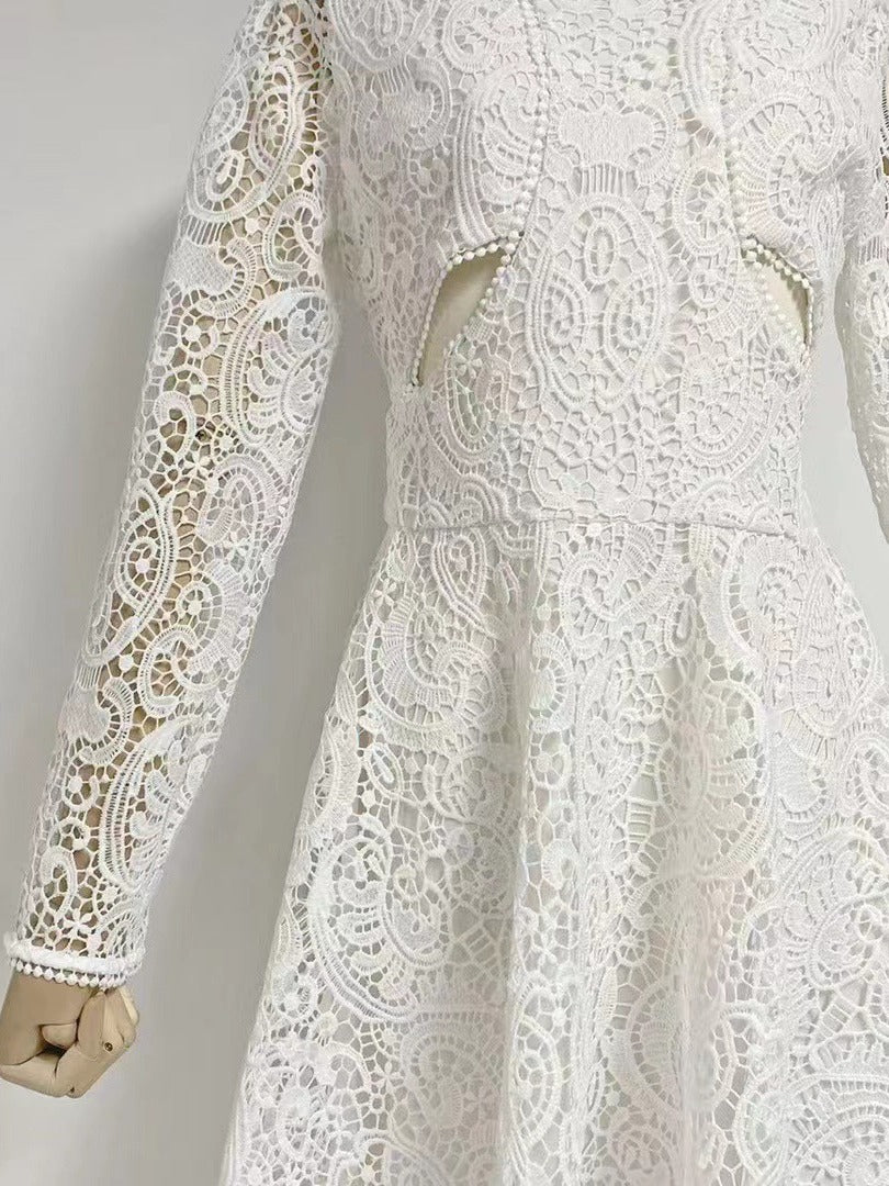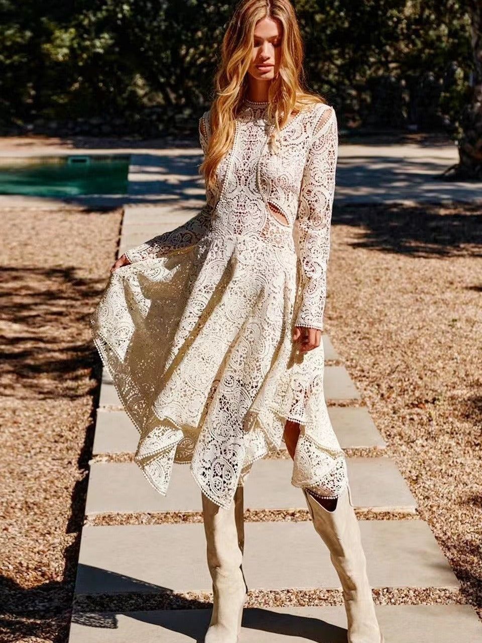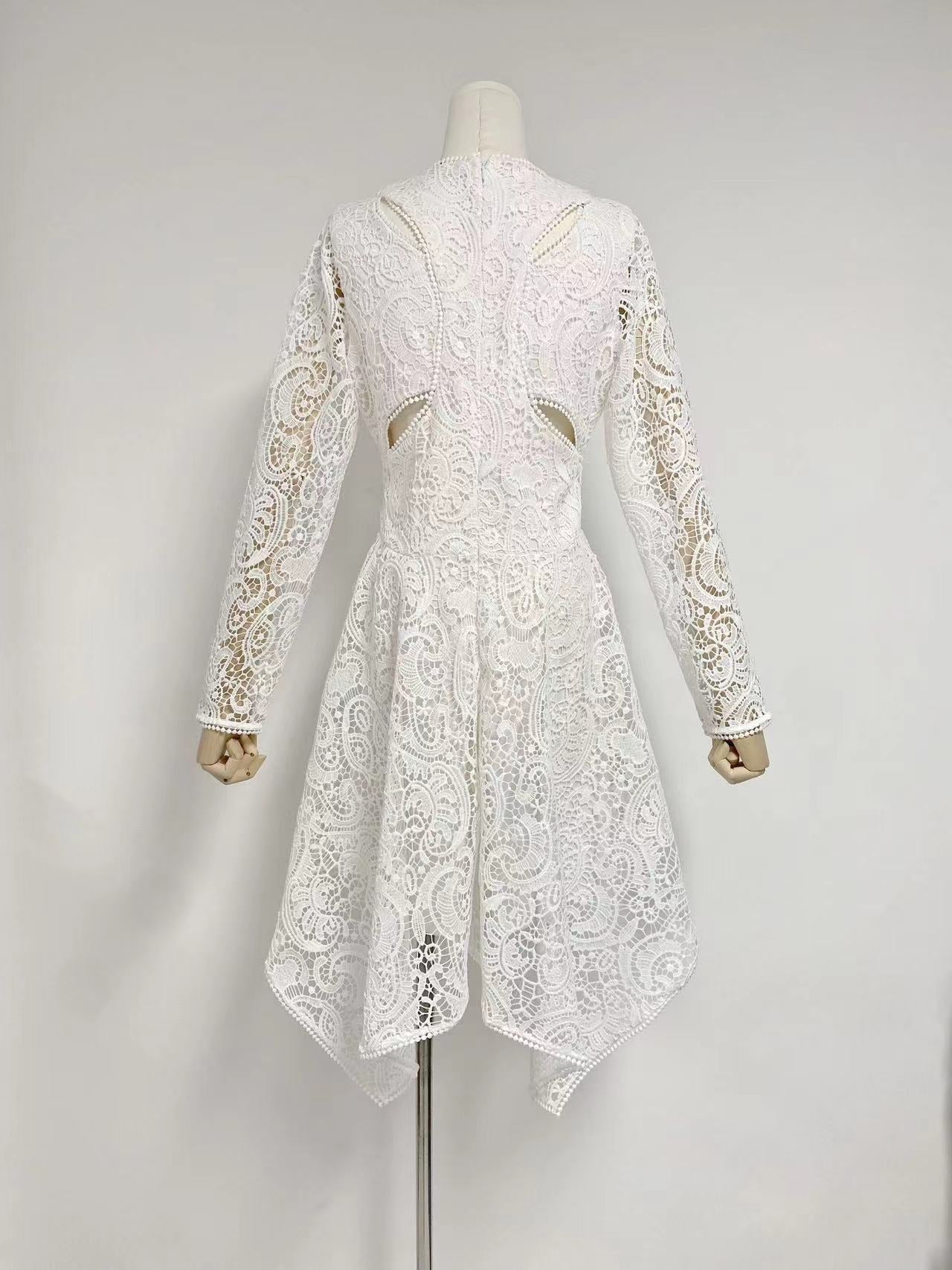 Autumn New Round-Neck Long-Sleeved Irregular Dress Type Hole Design Hollow Waist Short Dress Woman