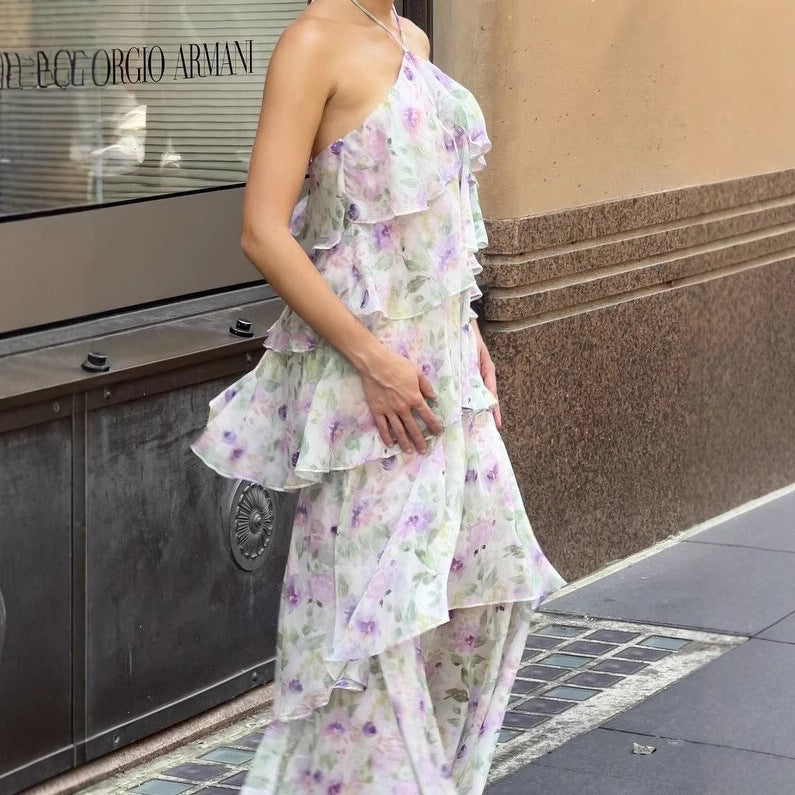 Beautiful Retro Floral Hanging Neck Sling Dress Summer Design Feel Seaside Vacation Beautiful Temperament Dress Woman HZ0628