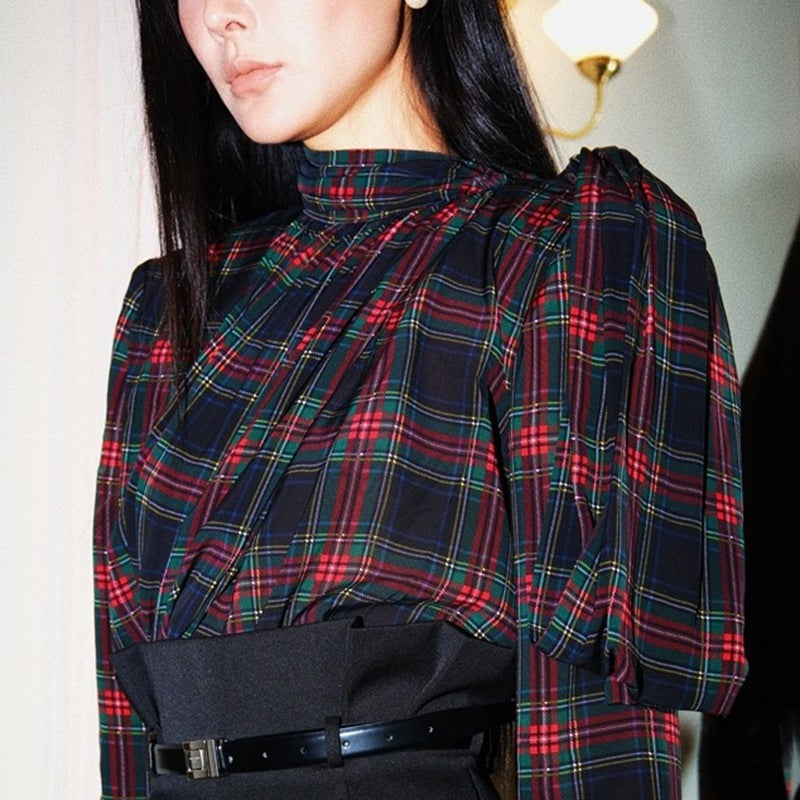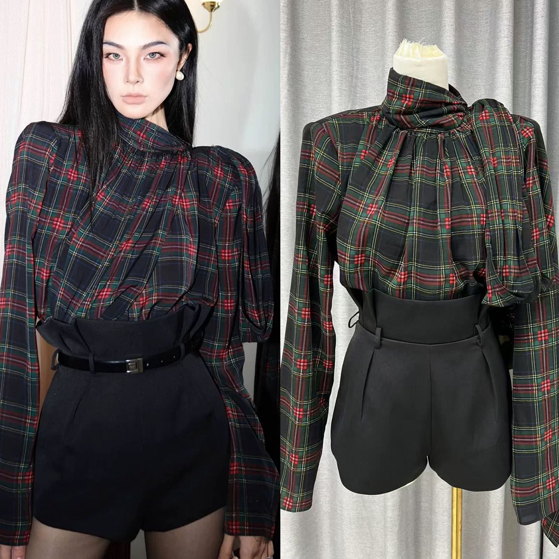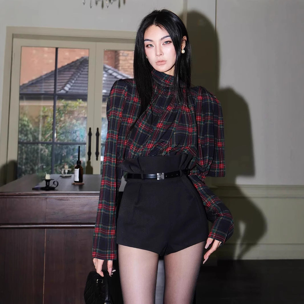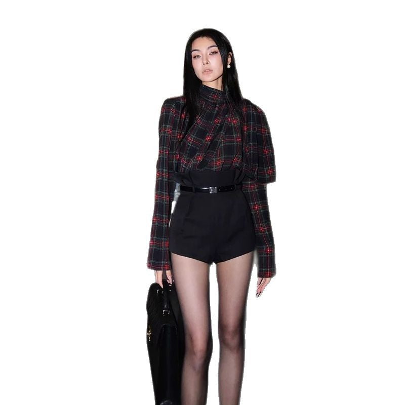 Belt) Zhao Sanguan Plaid Shirt Women 2025 Retro Plaid Shirt / High-Waisted Shorts