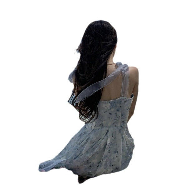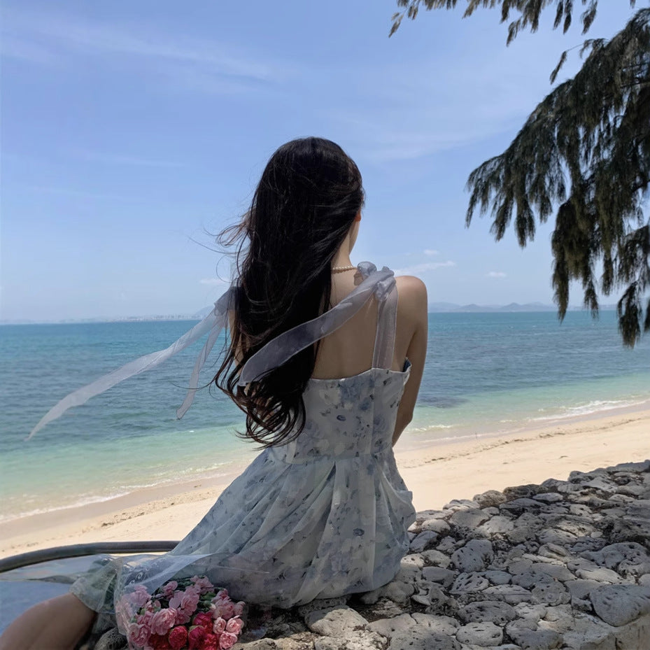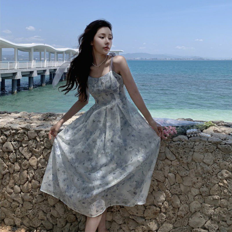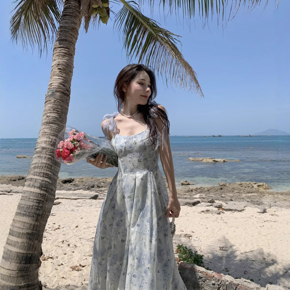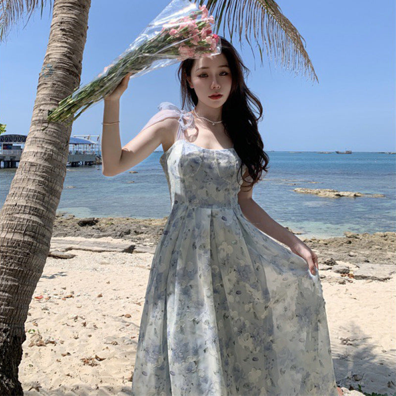 Break French Small Sling Dress Seaside Beach Dress Waist Crumb Skirt Chic Long Dress