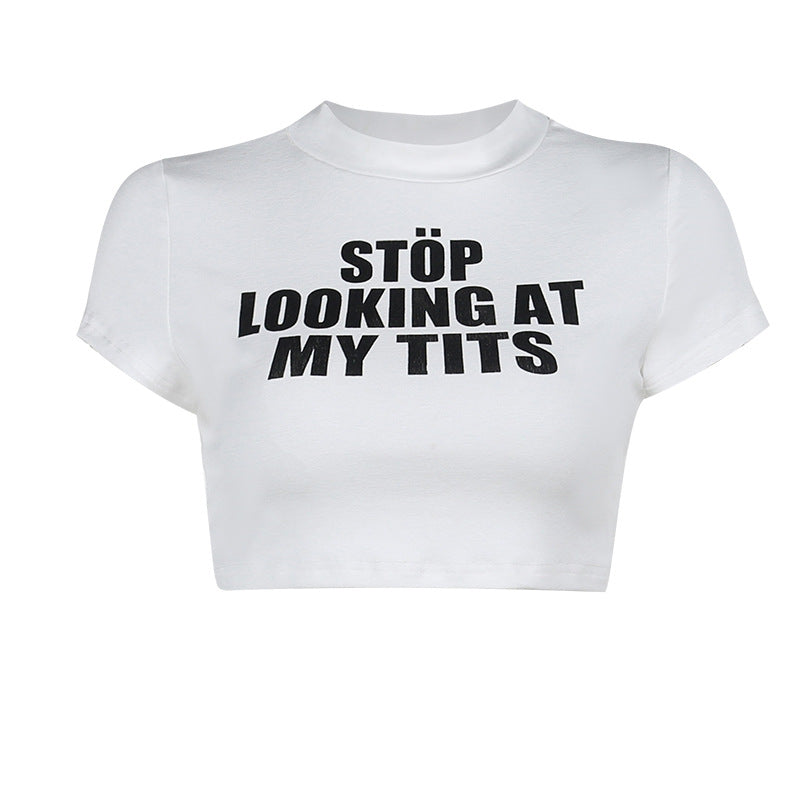 Casual Letter Print Ultra-Short Top Girl 2025 Summer Hot Girl Exposed Umbilical Repair T-Shirt DJPT