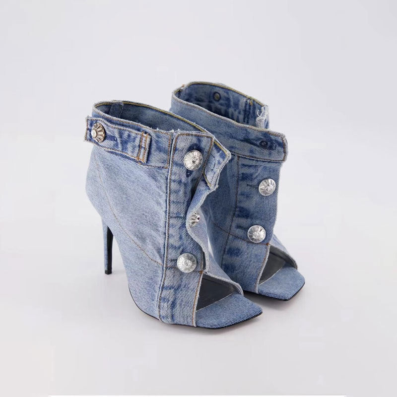 Catwalk Fine And Super High And High Help Big Fish Mouth Cowboy Button Slippers Square Boots Girl High Quality Shoes