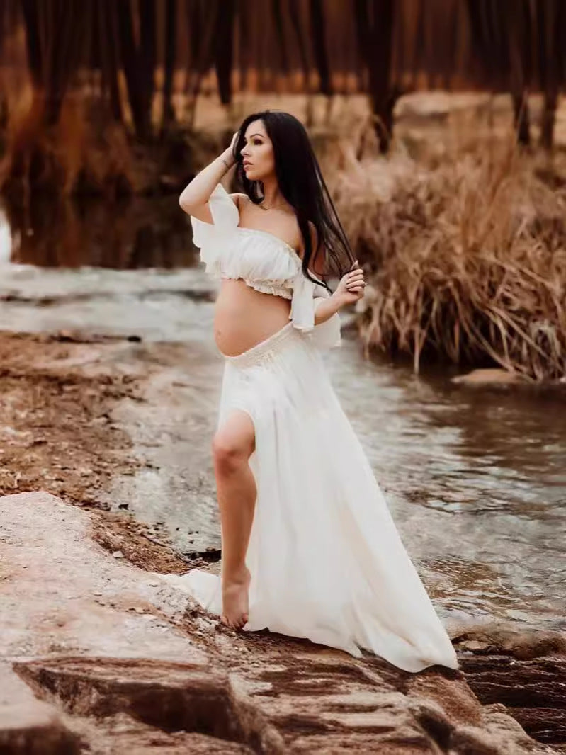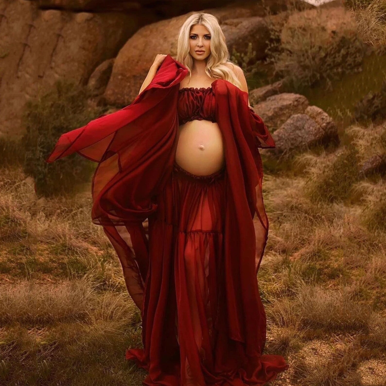 Chiffon Pregnant Women's Long Dress Set One Word For Summer Chiffon Pregnant Women To Take Pictures Maternity
