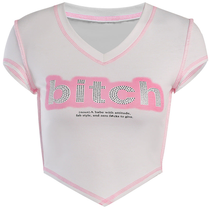 Clamming Side Letters Burning Printed Short-Sleeved T-Shirt Girl 2025 Hottie Sexy T-Shirt DJPT