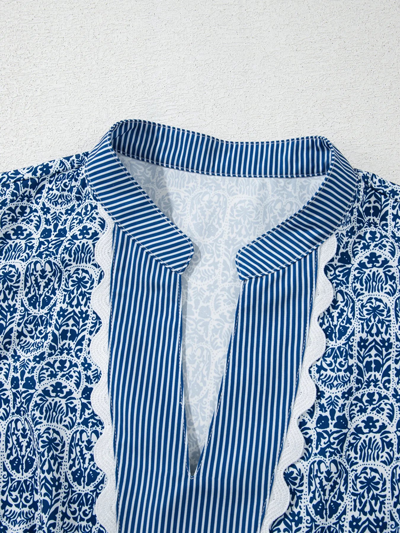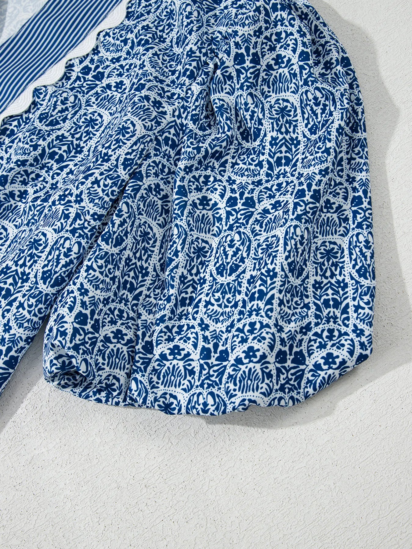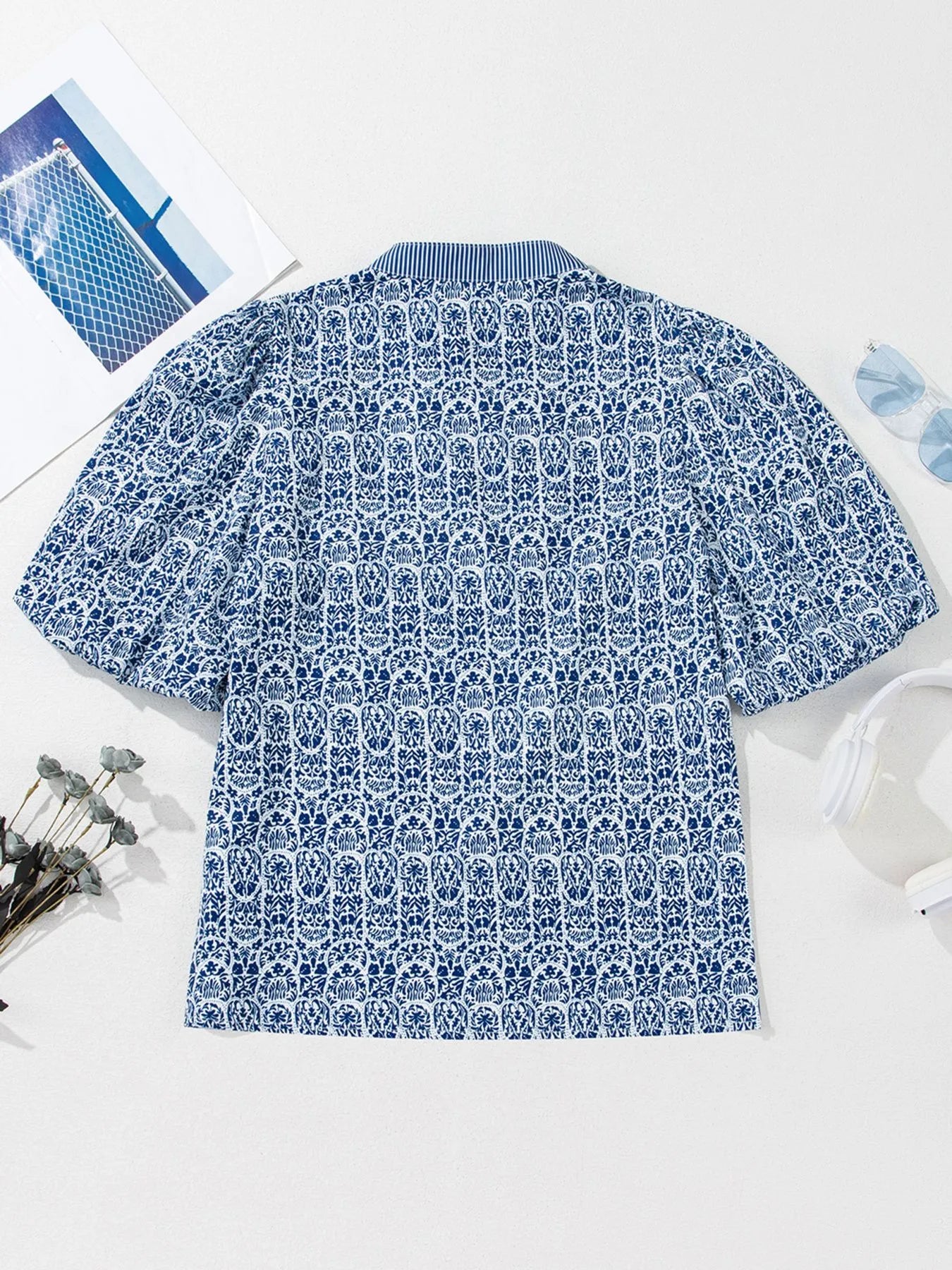 Contrast Ric-Rac Puff Sleeve Top DJPT