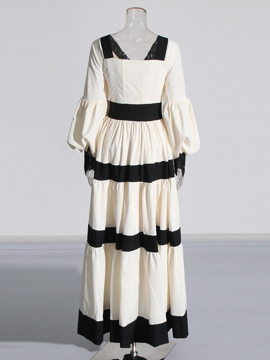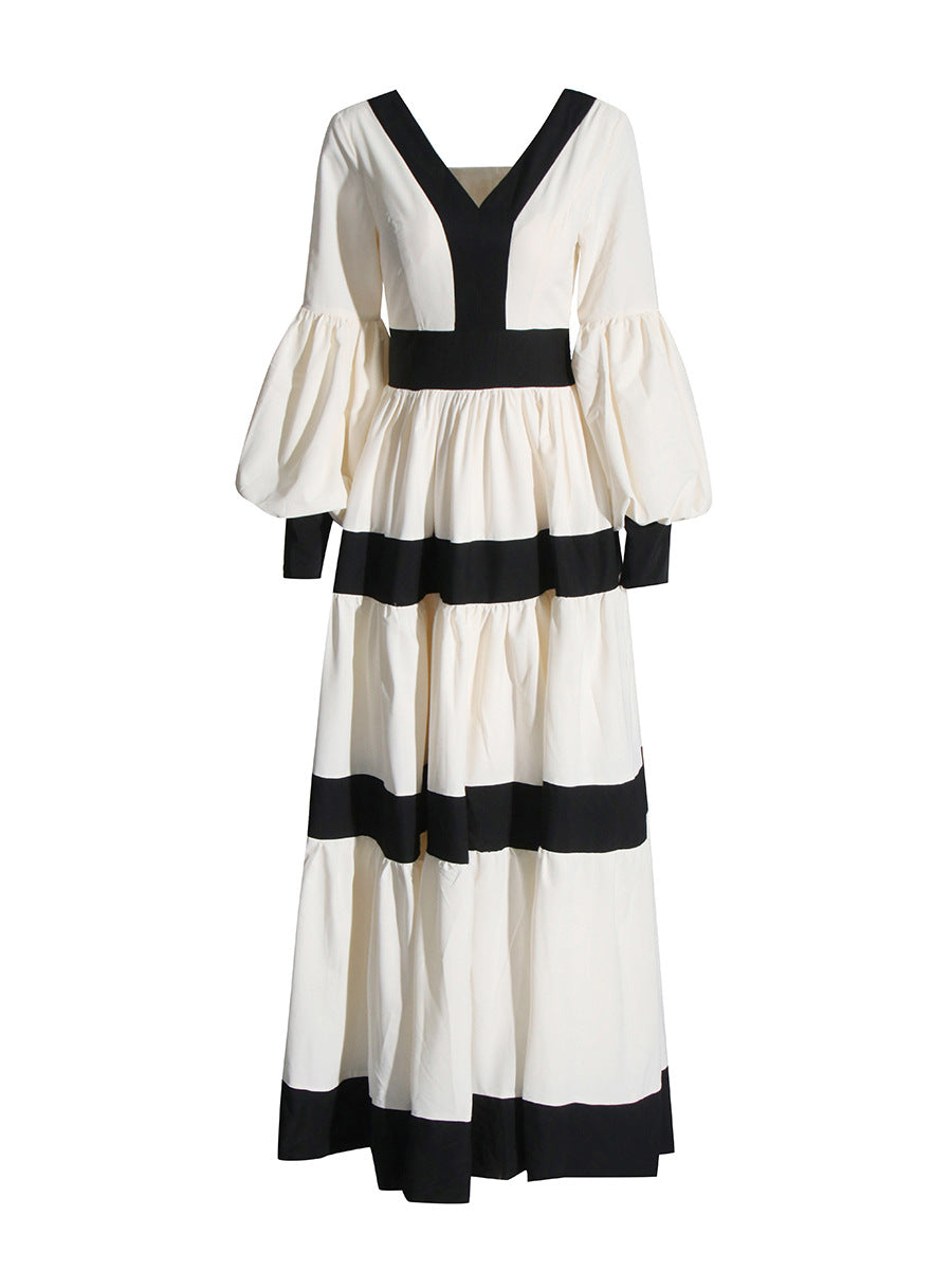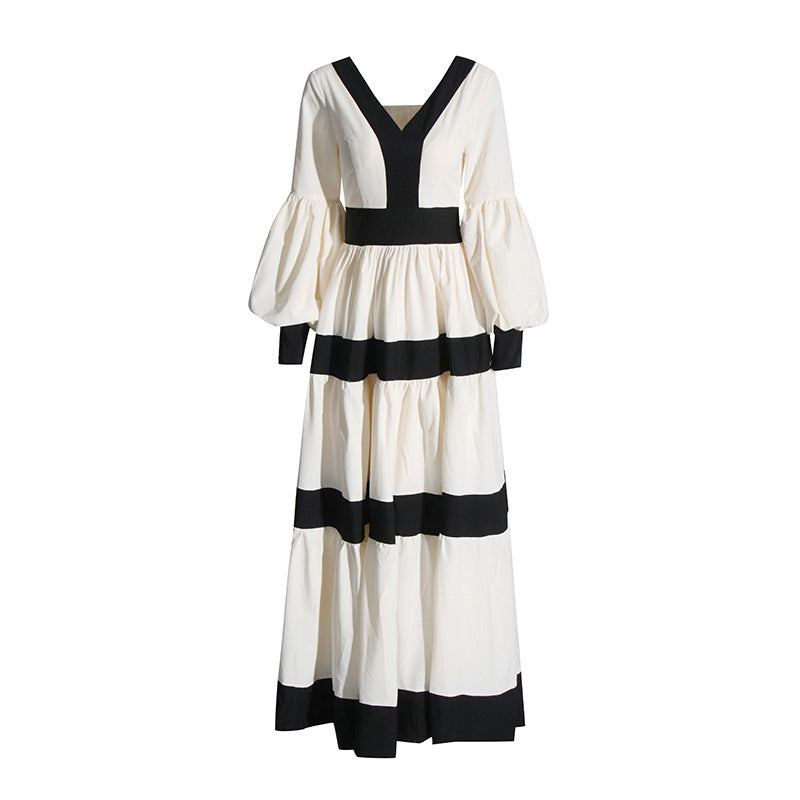 Court Dress Dress 2025 Summer New V-Neck Long Sleeves Bump Long Drag Dress