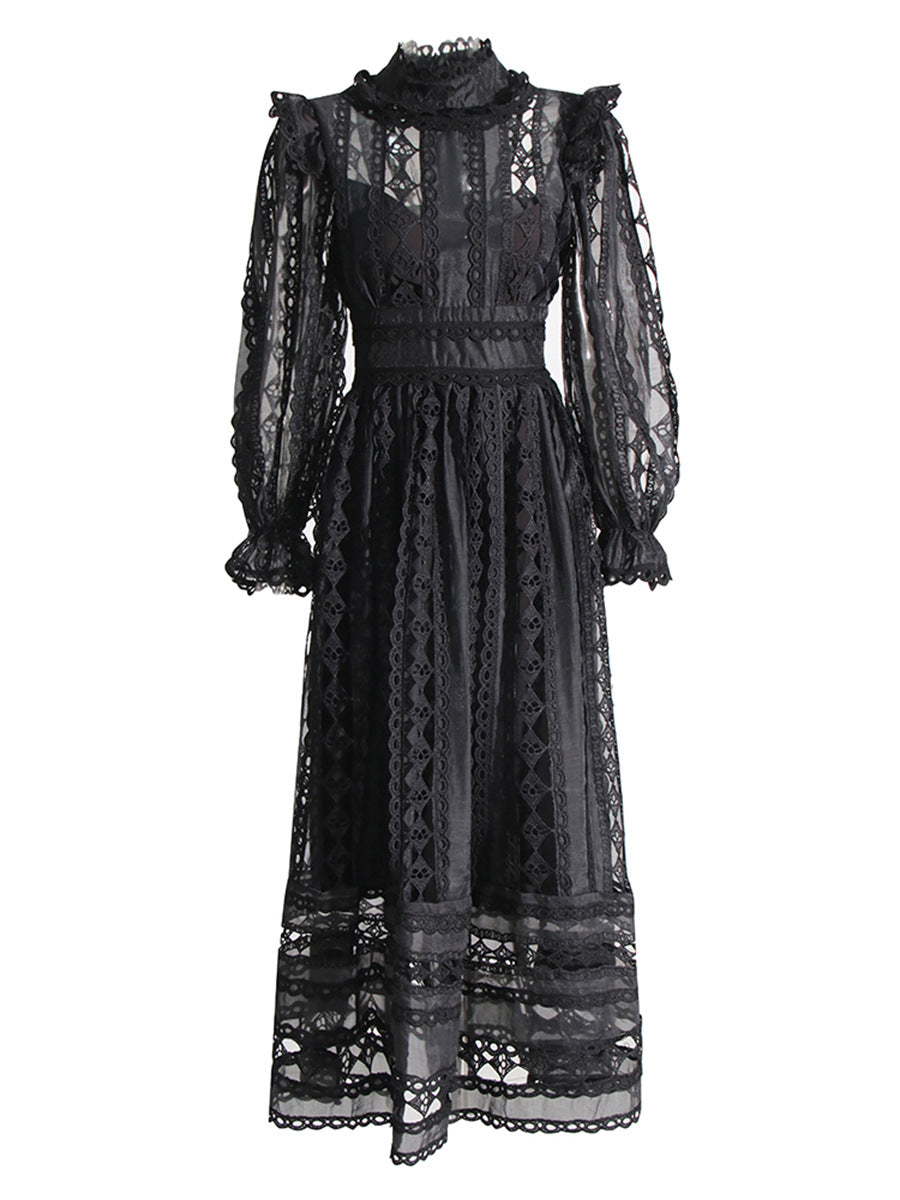 Court Dress Women's Dress Spring 2025 New Collar Lace Long Sleeves Embroidered High-Waisted Long Dress