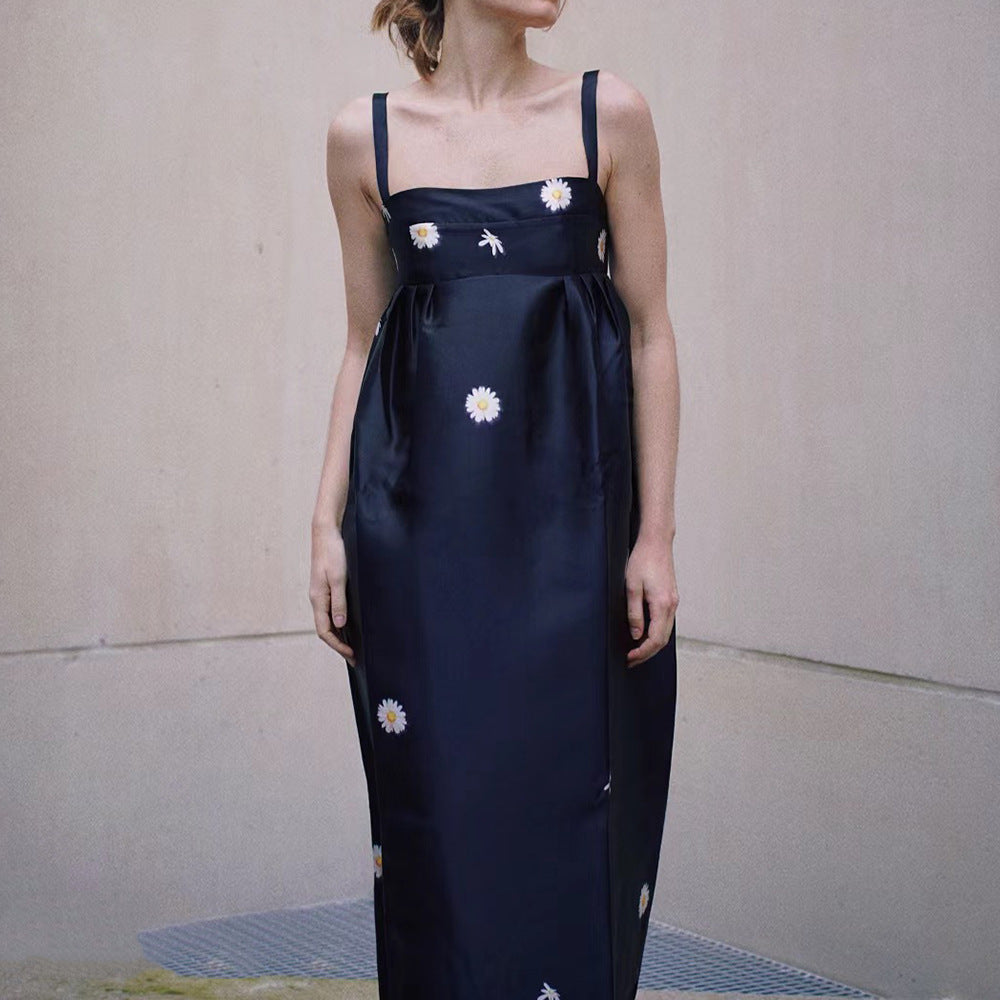 / Daisite Print Bare Back Sling Skirt Tea Break Gentle Booming Long Skirt 2024 New