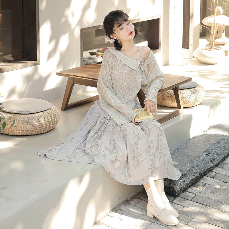 Design Chinese Style Improvement Chinese Elements Of Women's Coat Sling Skirt Suit 8952