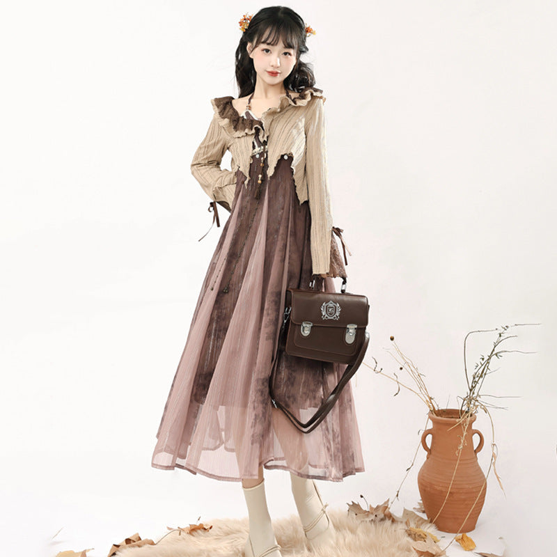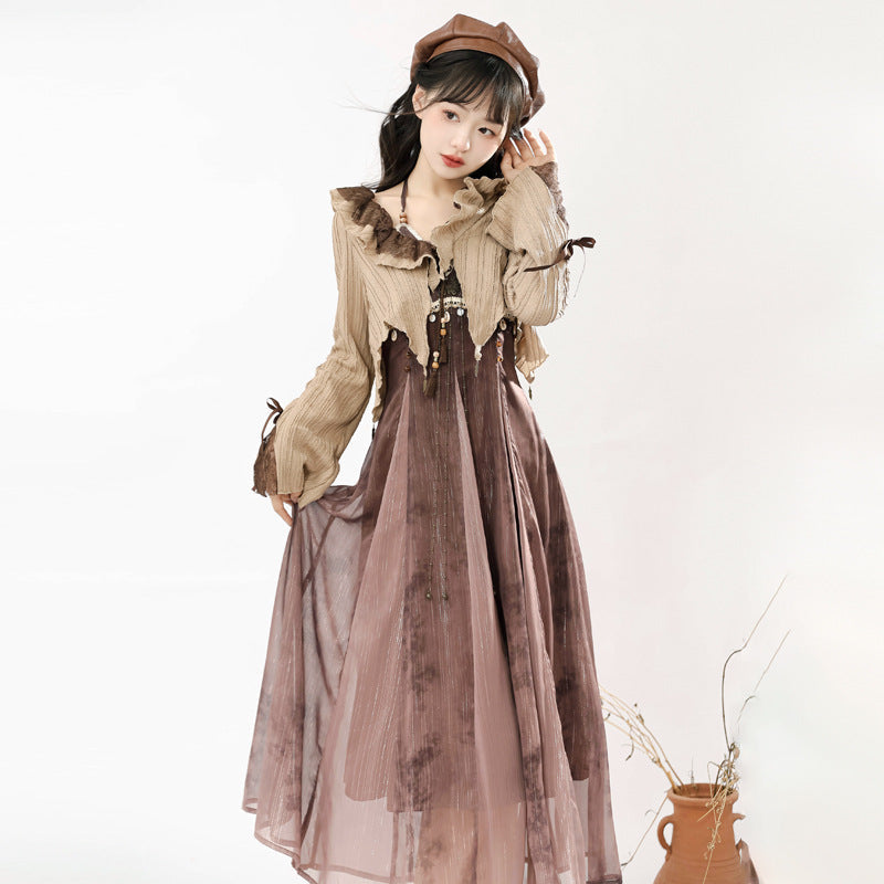Design Desert Withered Butterfly Chinese Style Improvement Han Elements Of Women's Top Dress Suit 6917