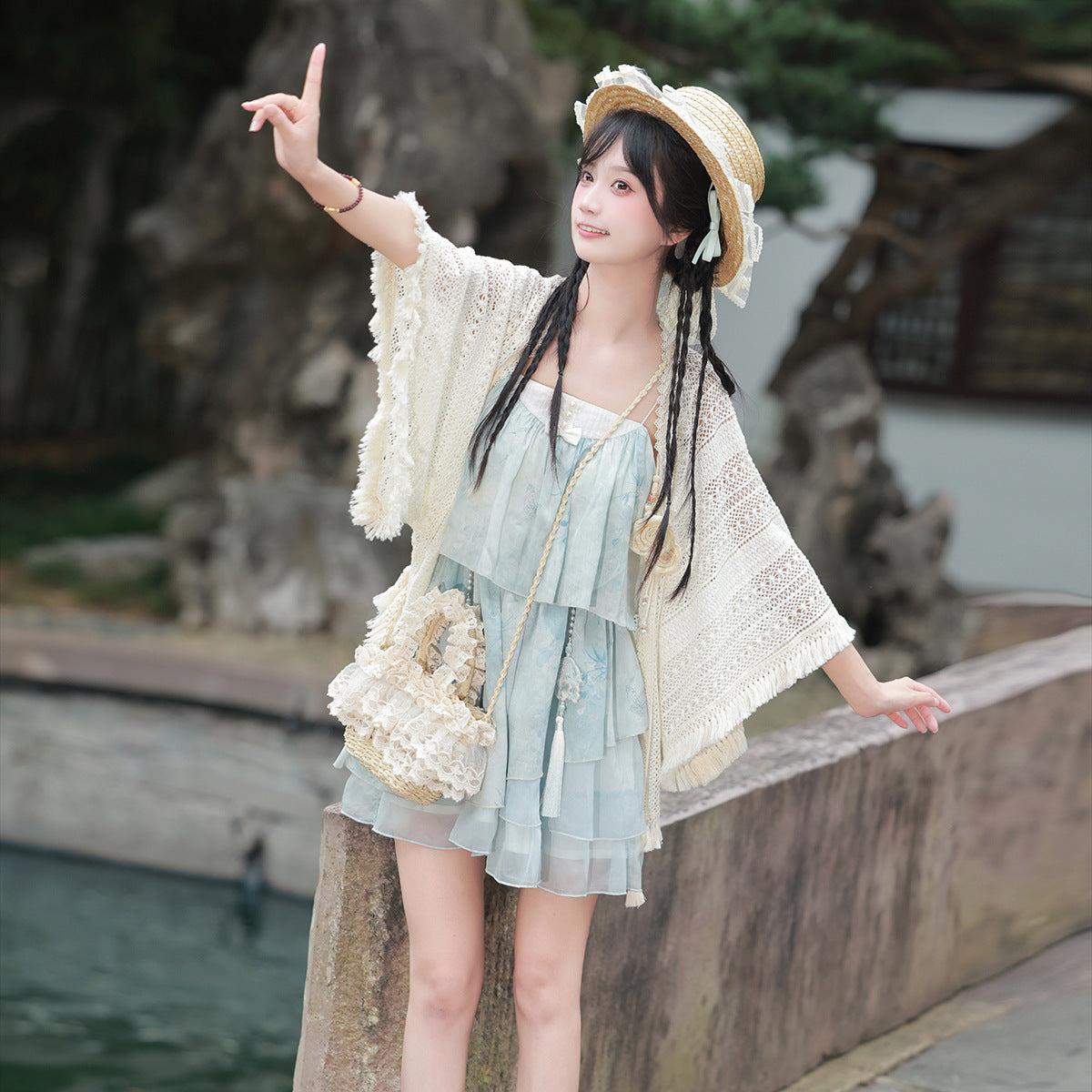 Design Haiyan Girl Chinese Style Improvement Han Element Women's Shawl Sling Skirt Set 7131