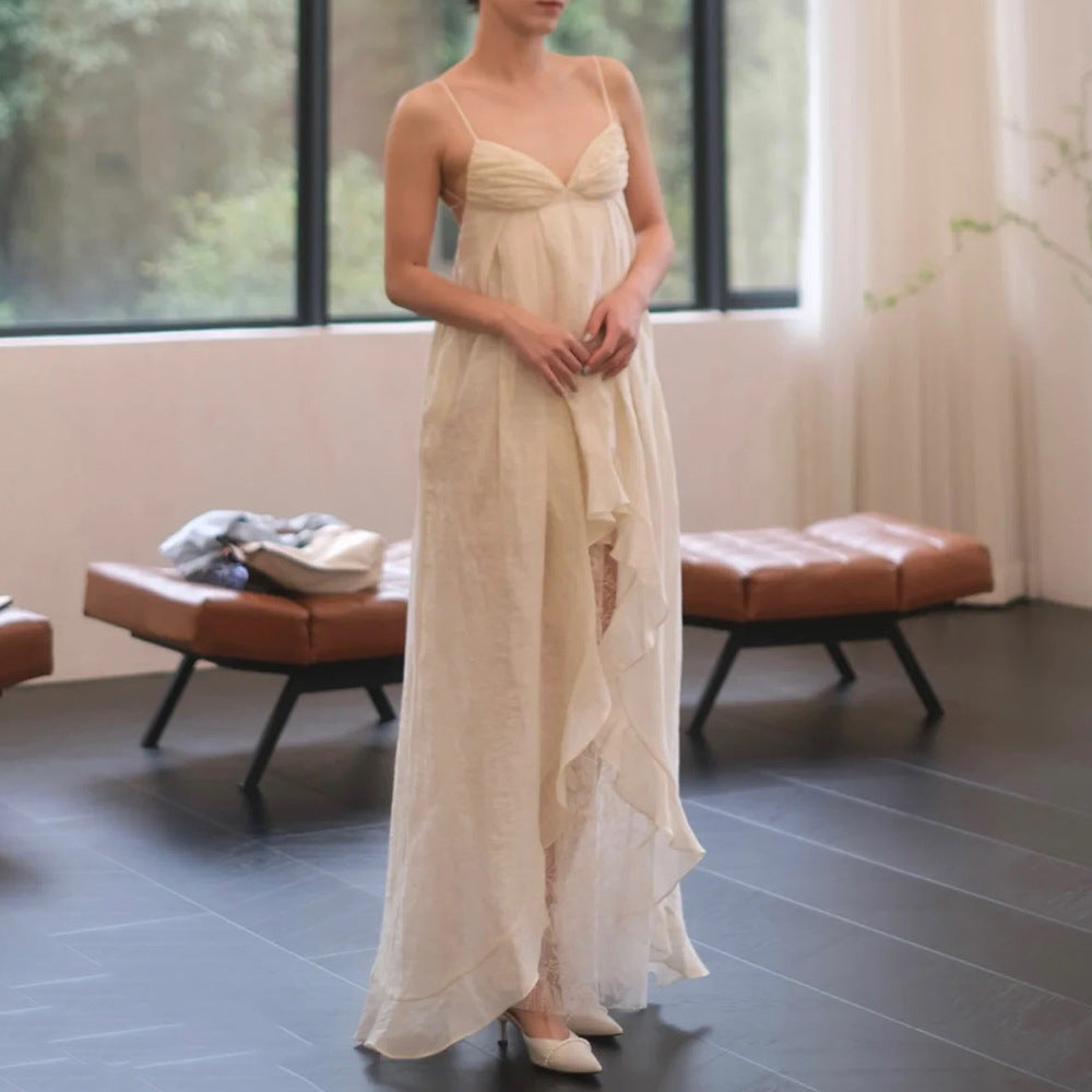 Design Lace Splicing Dress 2024 New Fashion V-Neck Braeed Sling Skirt