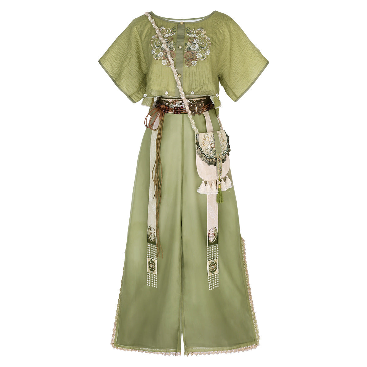 Design Yuehua Tour Chinese Style Improvement Chinese Elements Of The New Chinese Style Women's Short-Sleeved Blouse Trousers Set 9086