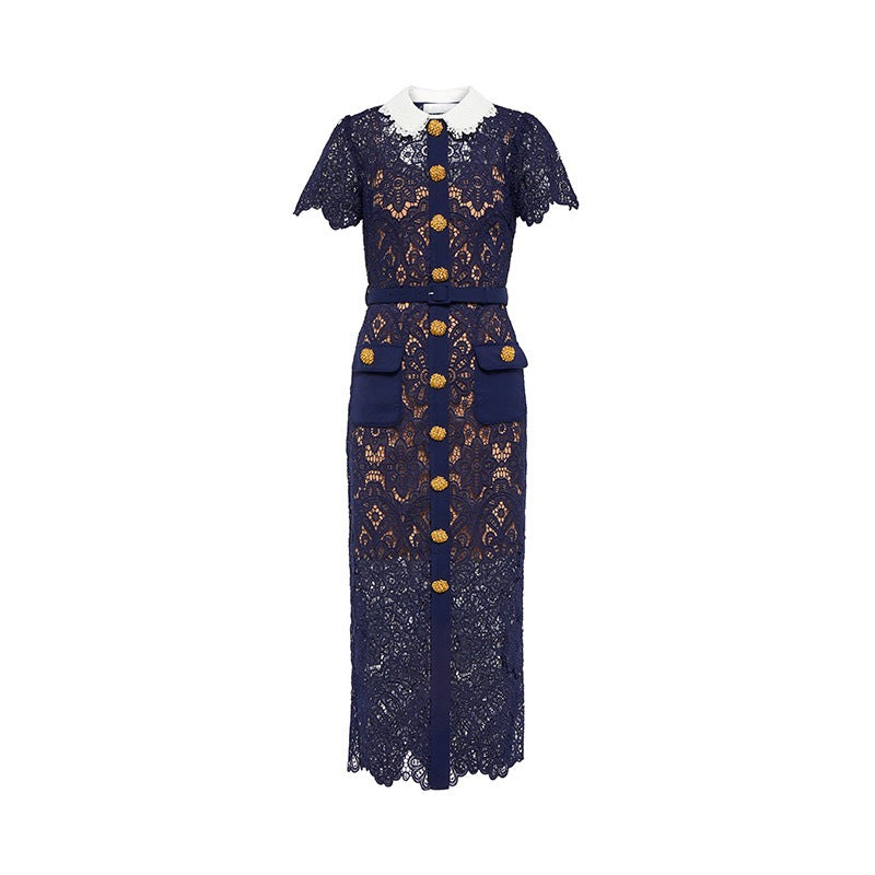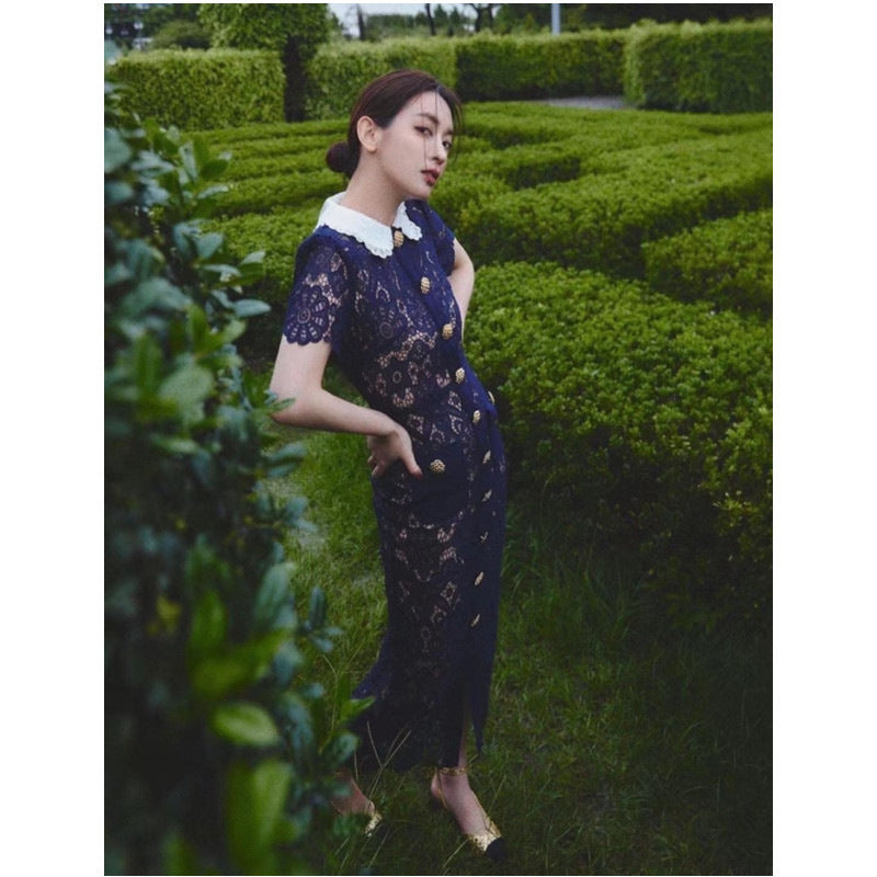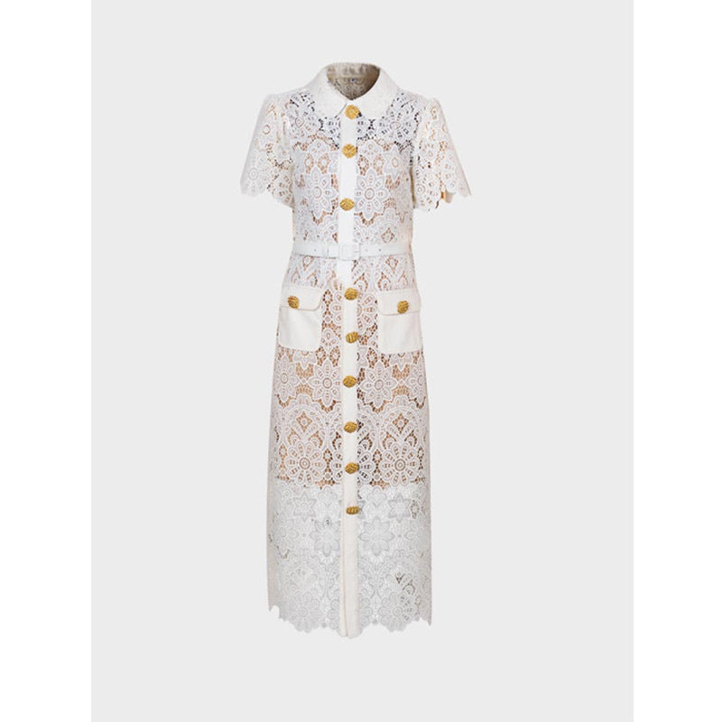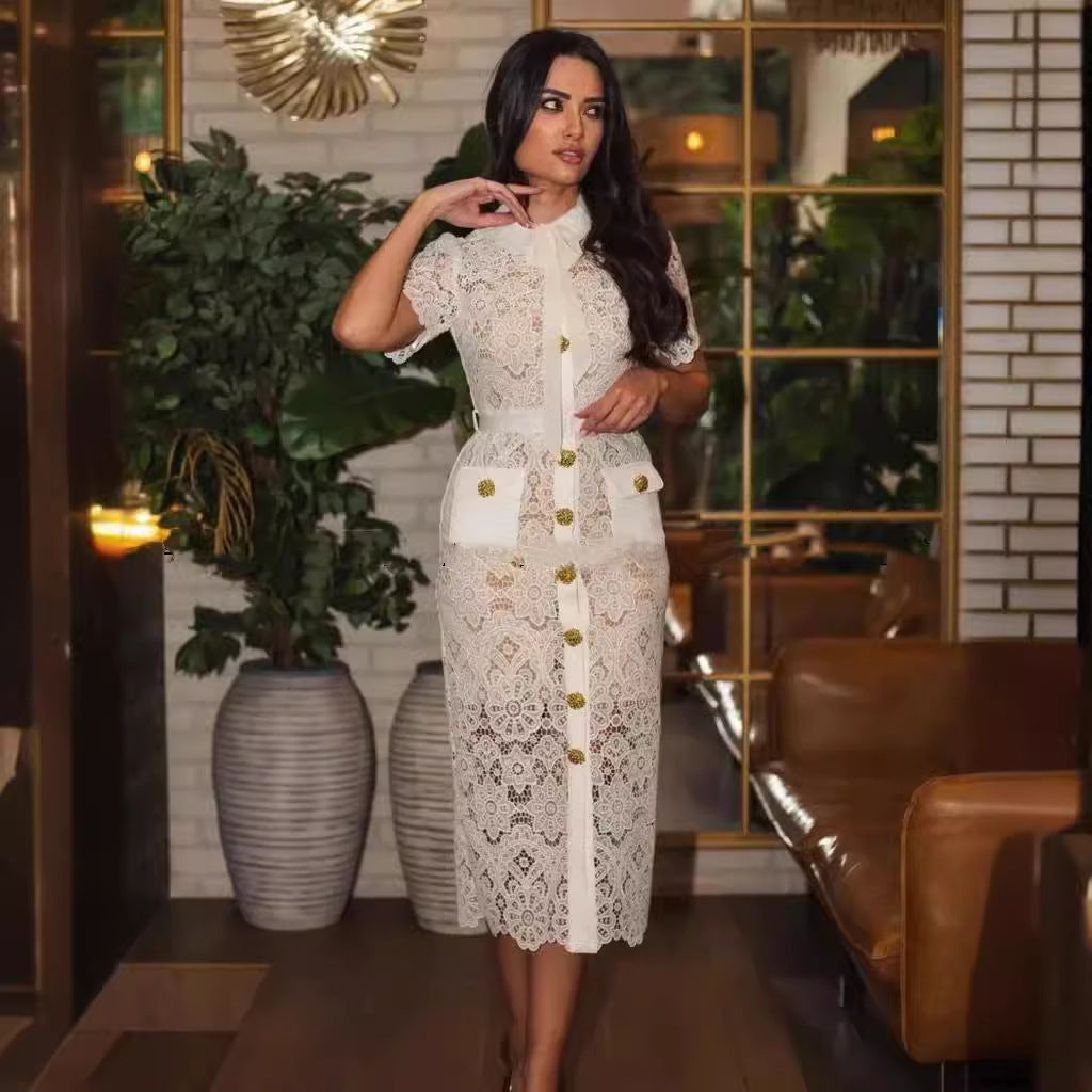 Designer Trendy Clapping Single Buckle Flowers Hollow Lace Elegant Temperament Intellectual Dress Dress