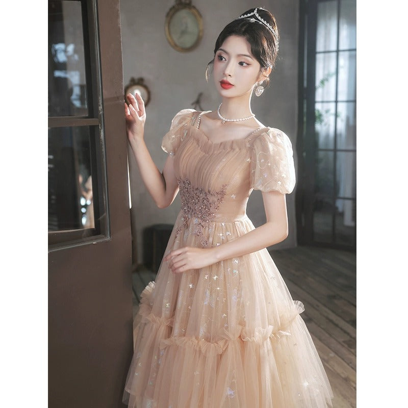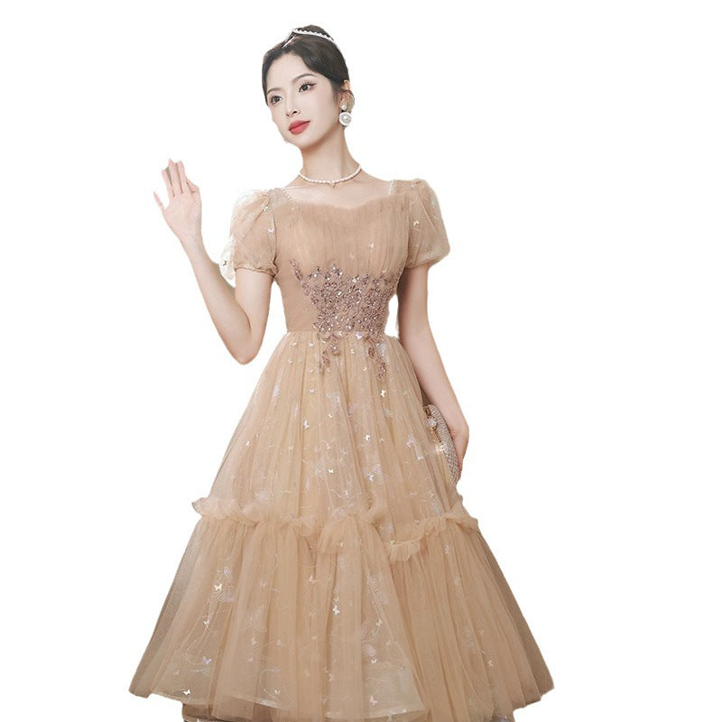 Dress Woman 2025 New Light Luxury Small High-End Small Banquet Senior Feeling Host Birthday Wedding Dress