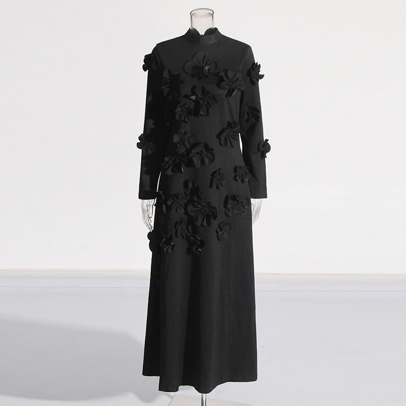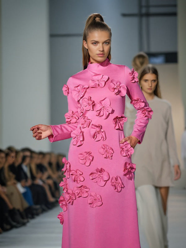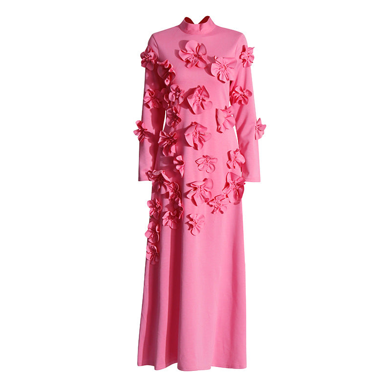 Dress Women's Dress 2025 Spring Fashion High Tie Spliced Flower Pink Dress