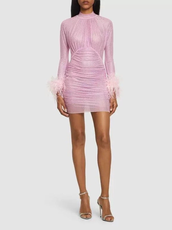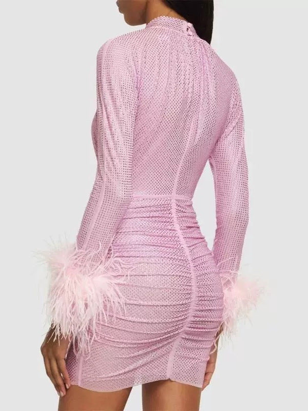 Early Autumn Designer Fashion Fashion Eye-Catching Hot Ostriches Cuffs To Repair The Hip Dress Dress