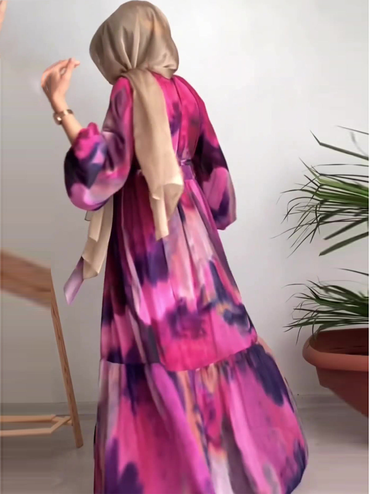 Eastern Muslims Spring 2024 New Chiffon Print Fashion Temperament Dress