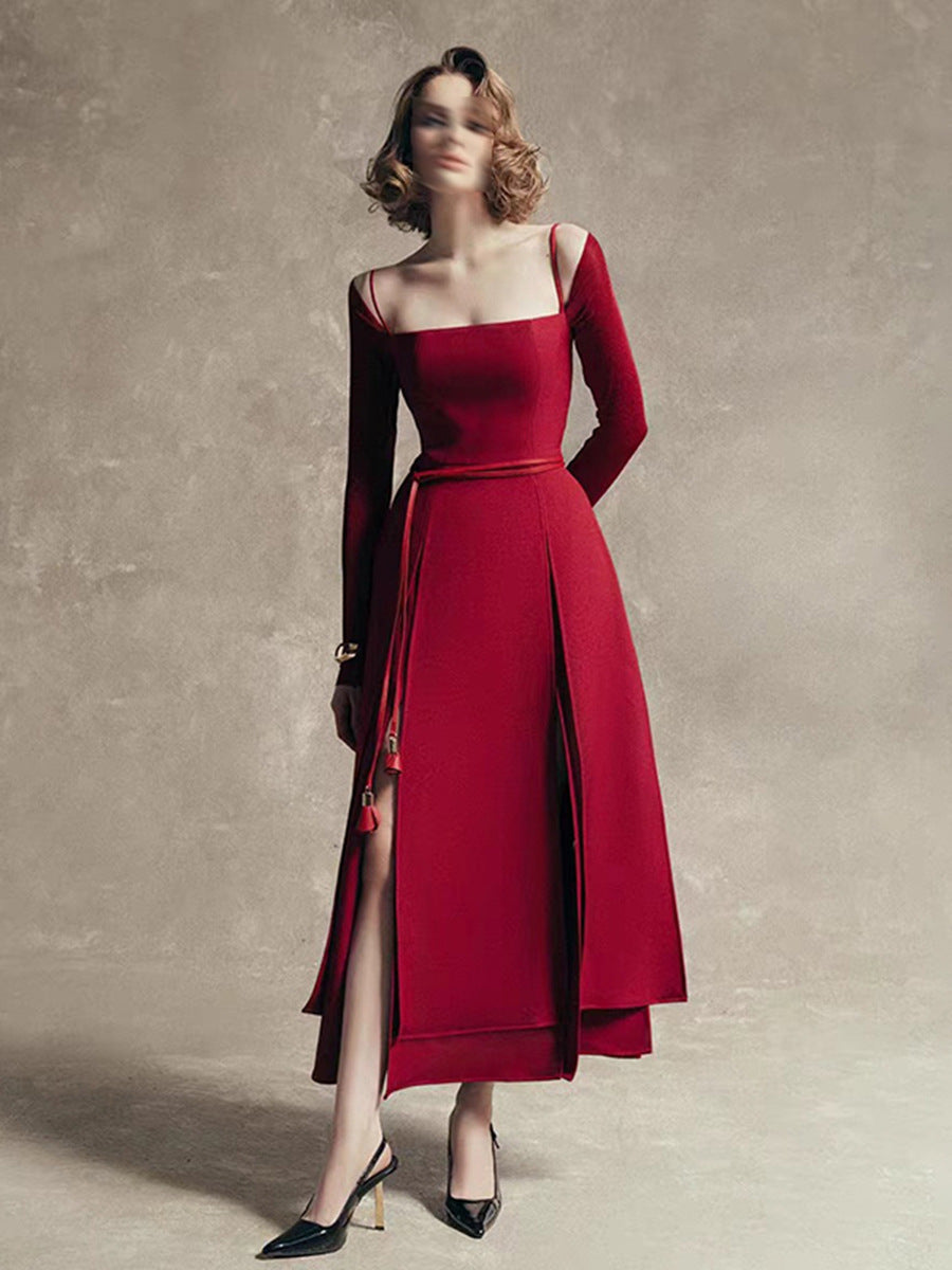 Elegant Ball Dress 2025 Summer New Square Tie Tie With Long Sleeve Open Swing Dress Woman