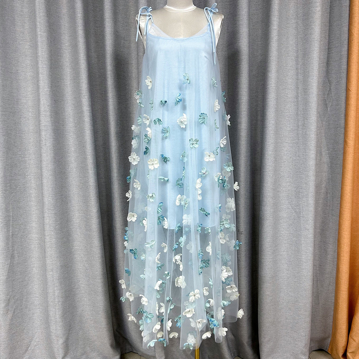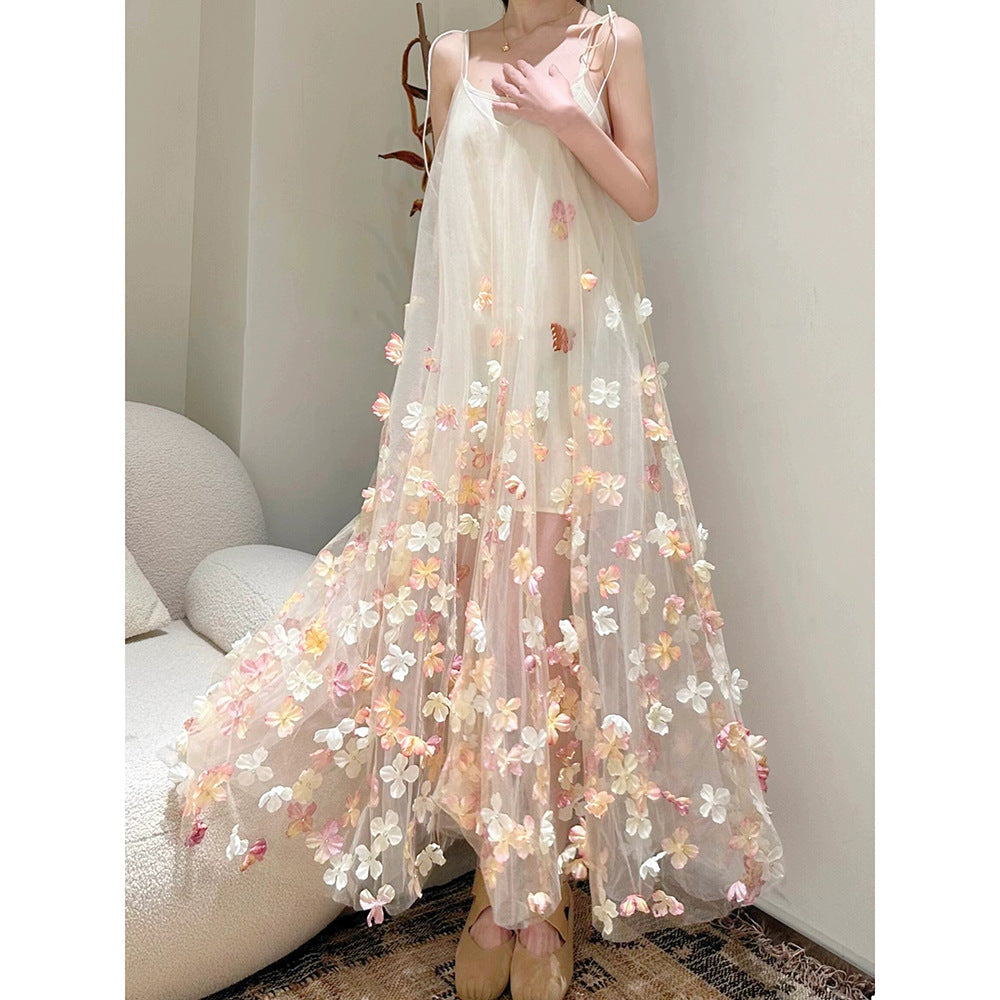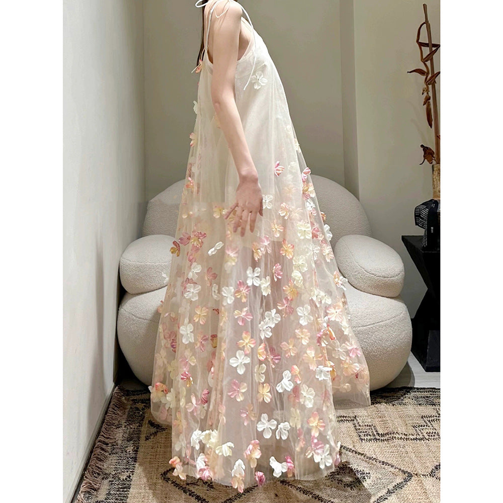 Fairy Multicolored Flower Netɴ Dress 2024 New Dream Sweet Sleeveless Suede Dress